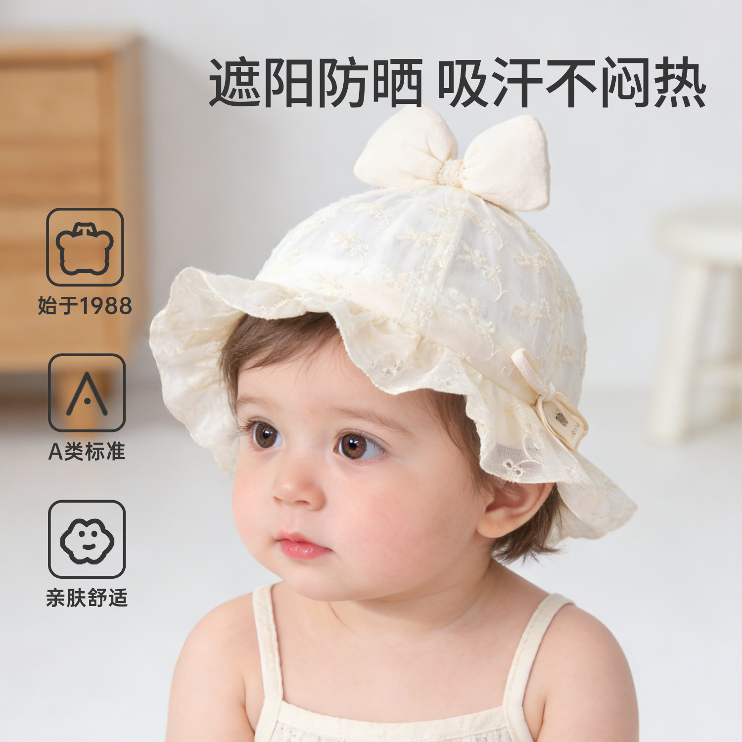 婴儿帽子女宝宝遮阳公主帽新生儿薄款小月龄防晒帽可爱渔夫帽超萌