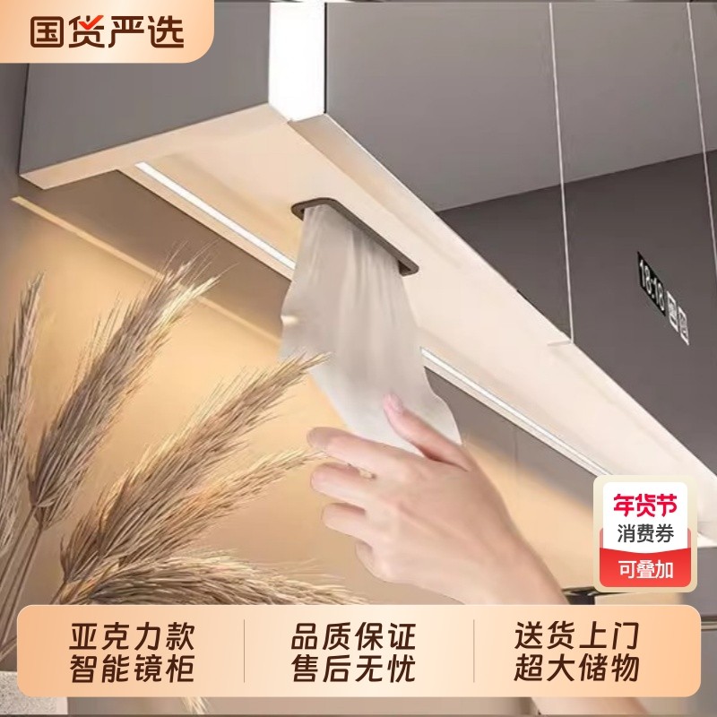 实木智能浴室镜柜单独挂墙式带灯卫生间镜子收纳柜子镜箱亚克力