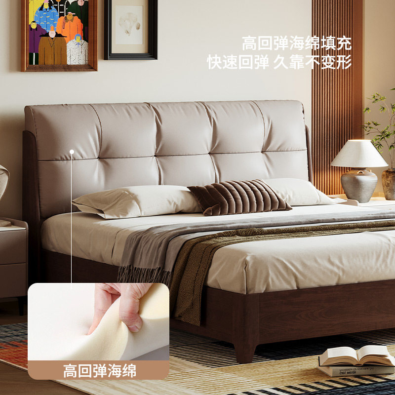 慕思旗舰店全实木床黑胡桃木储物床卧室大床高箱床头层牛皮床主卧