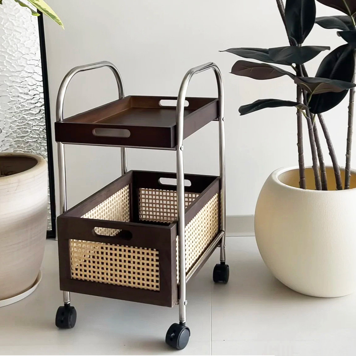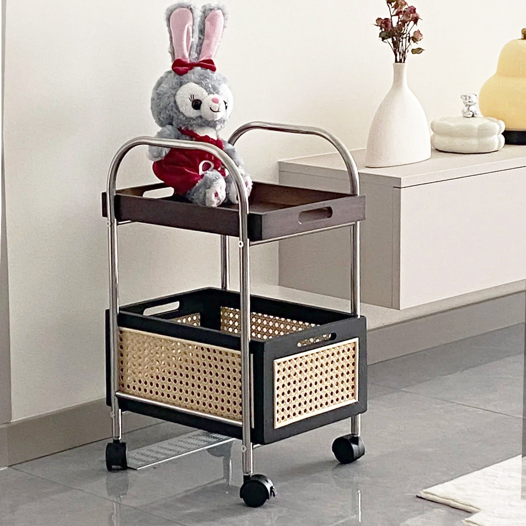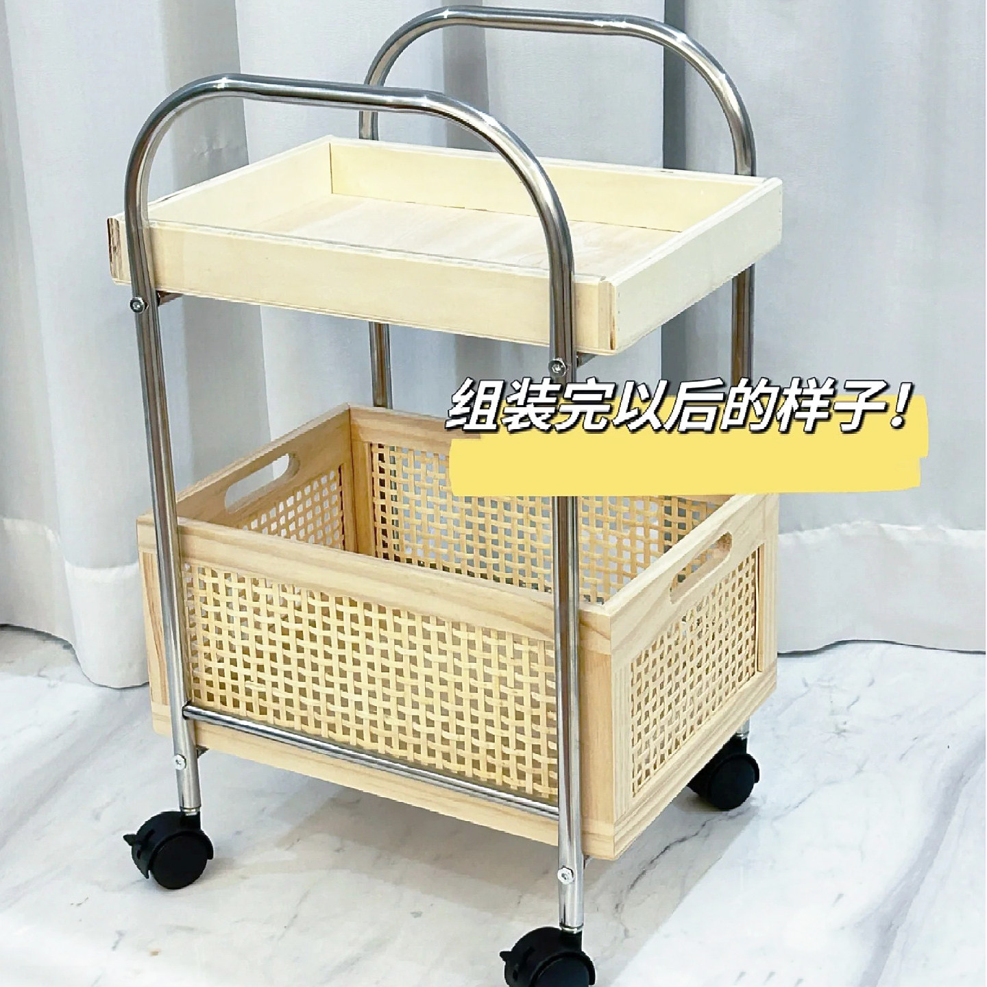不锈钢脸盆架带轮置物架零食化妆推车厨房卫生间落地式置物架多层
