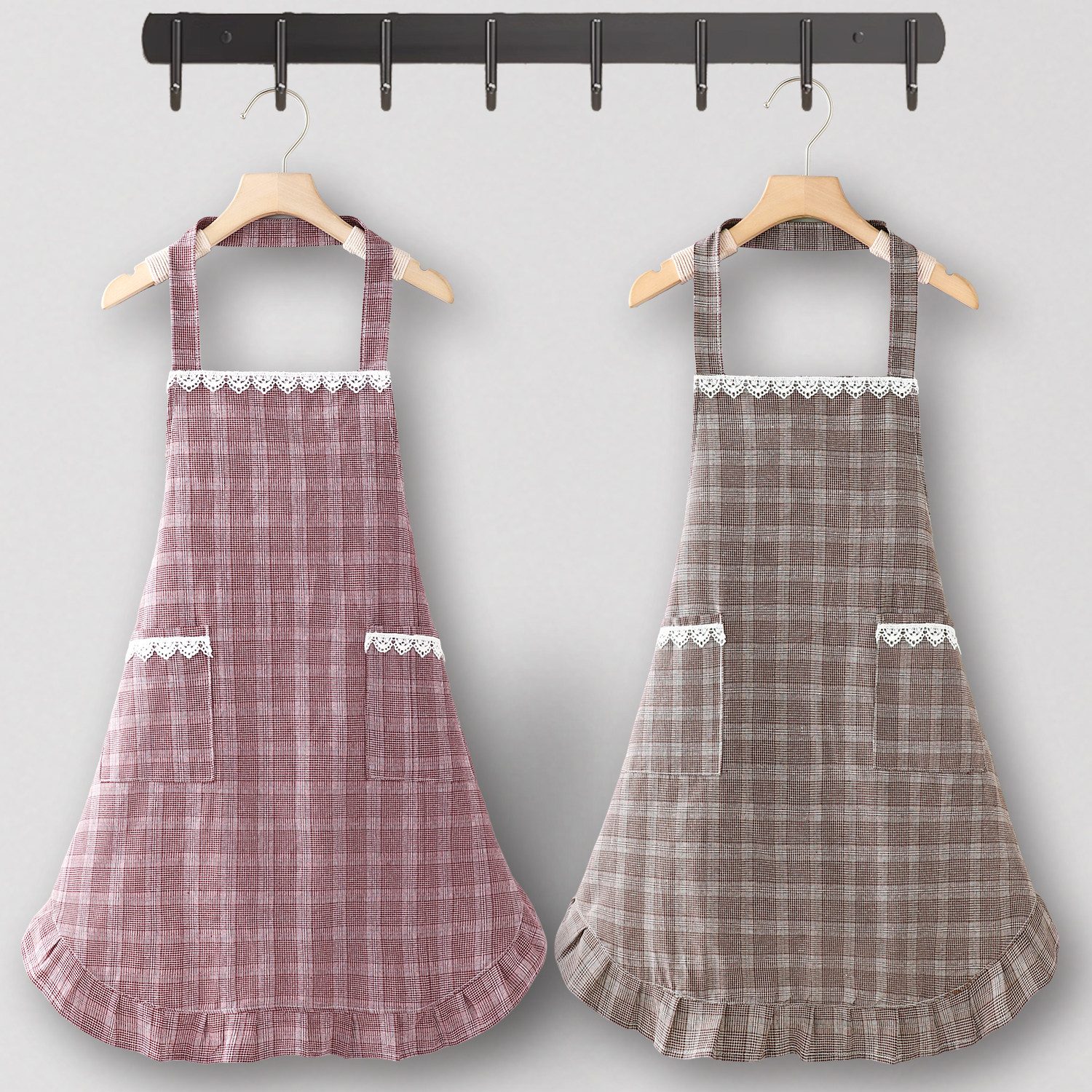 小个子围裙厨房家用做饭棉布工作服餐饮上班专用2025新款卓衣格子