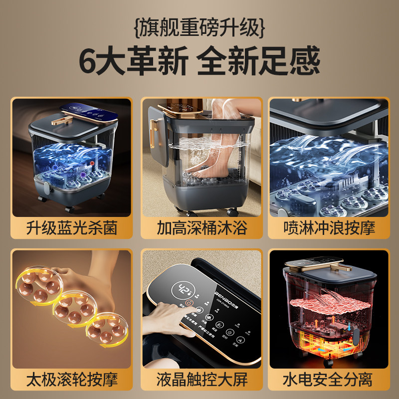 本博泡脚桶加热恒温全自动电动按摩洗脚桶家用智能高深养生足浴盆