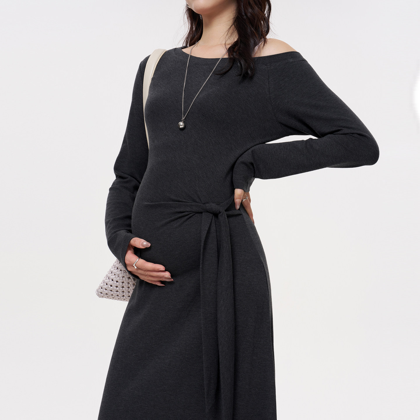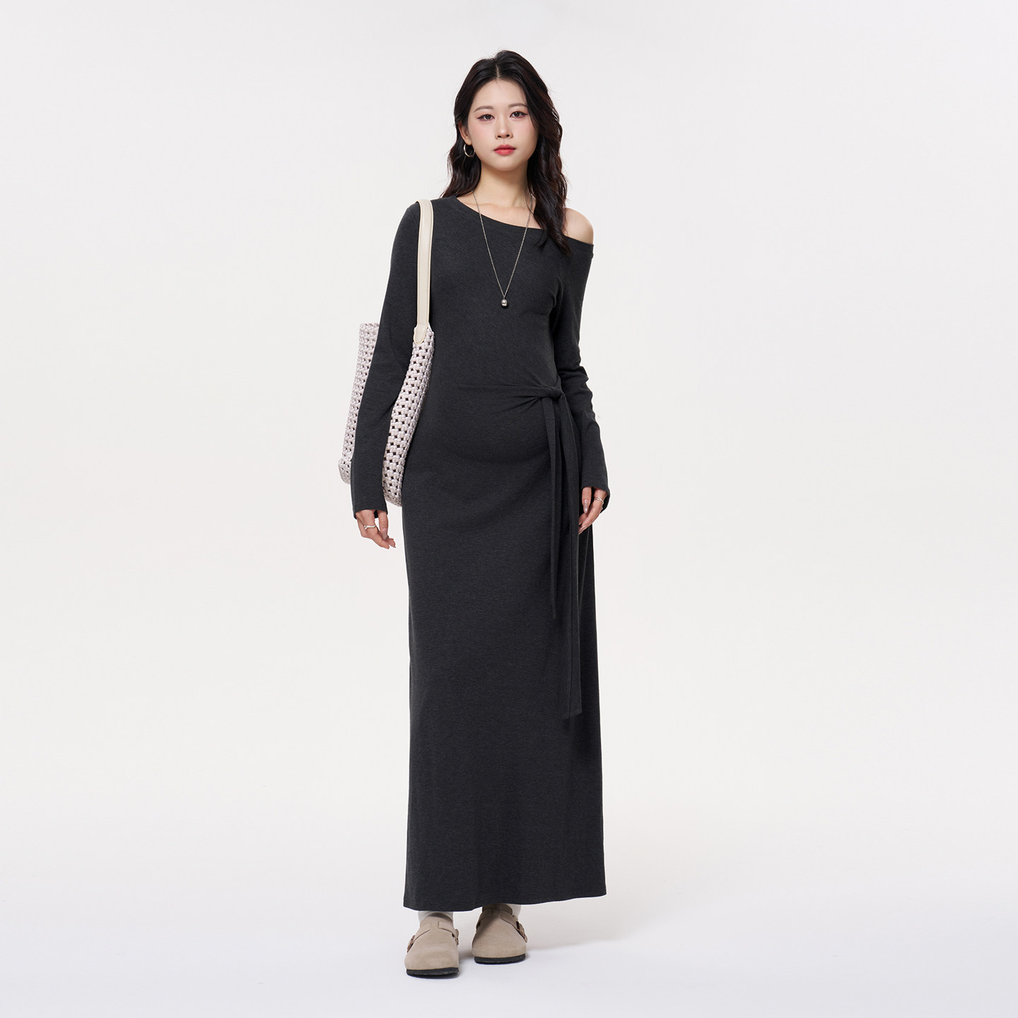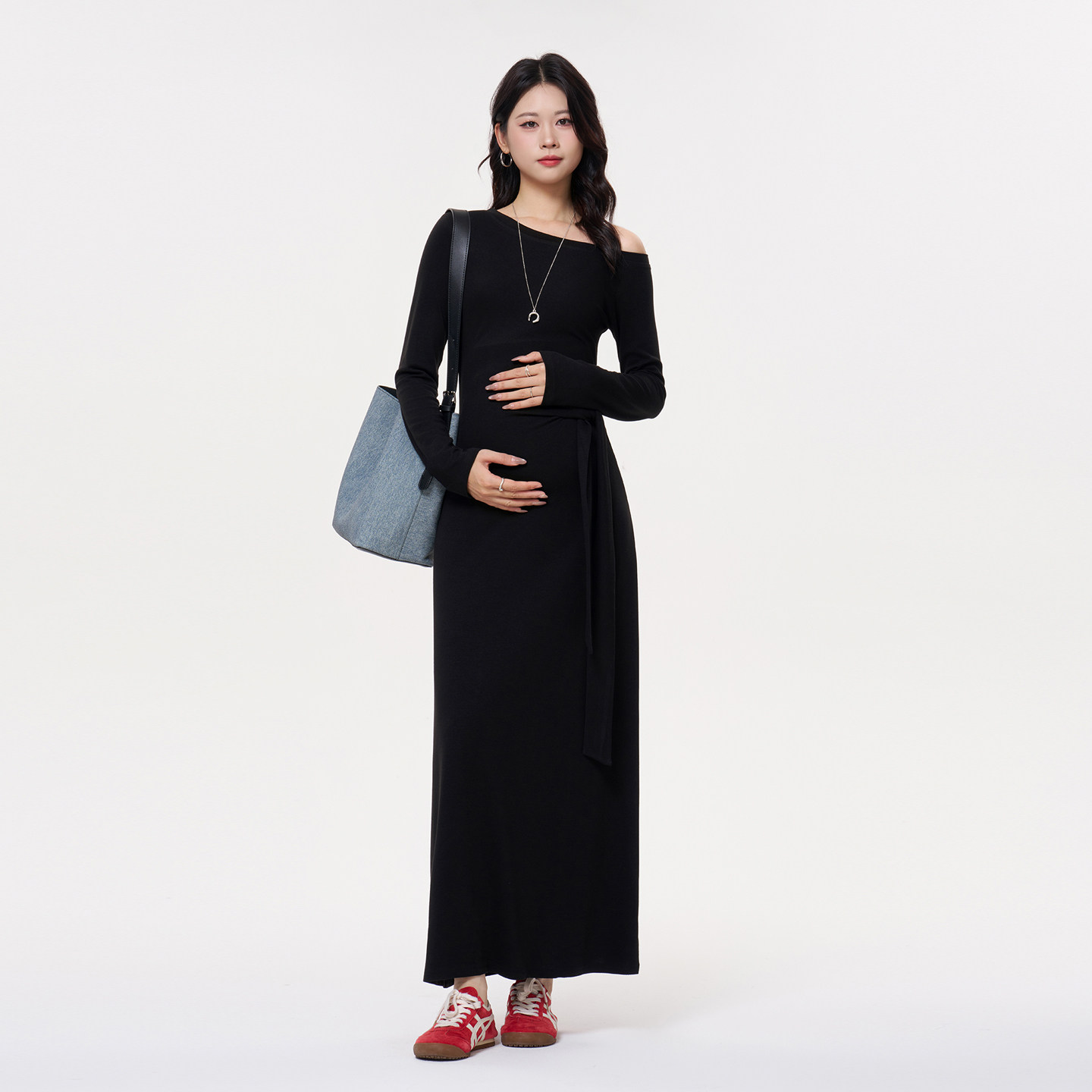 ellieluke孕妇裙秋季新款法式高级感穿搭斜肩绑带长款连衣裙秋装