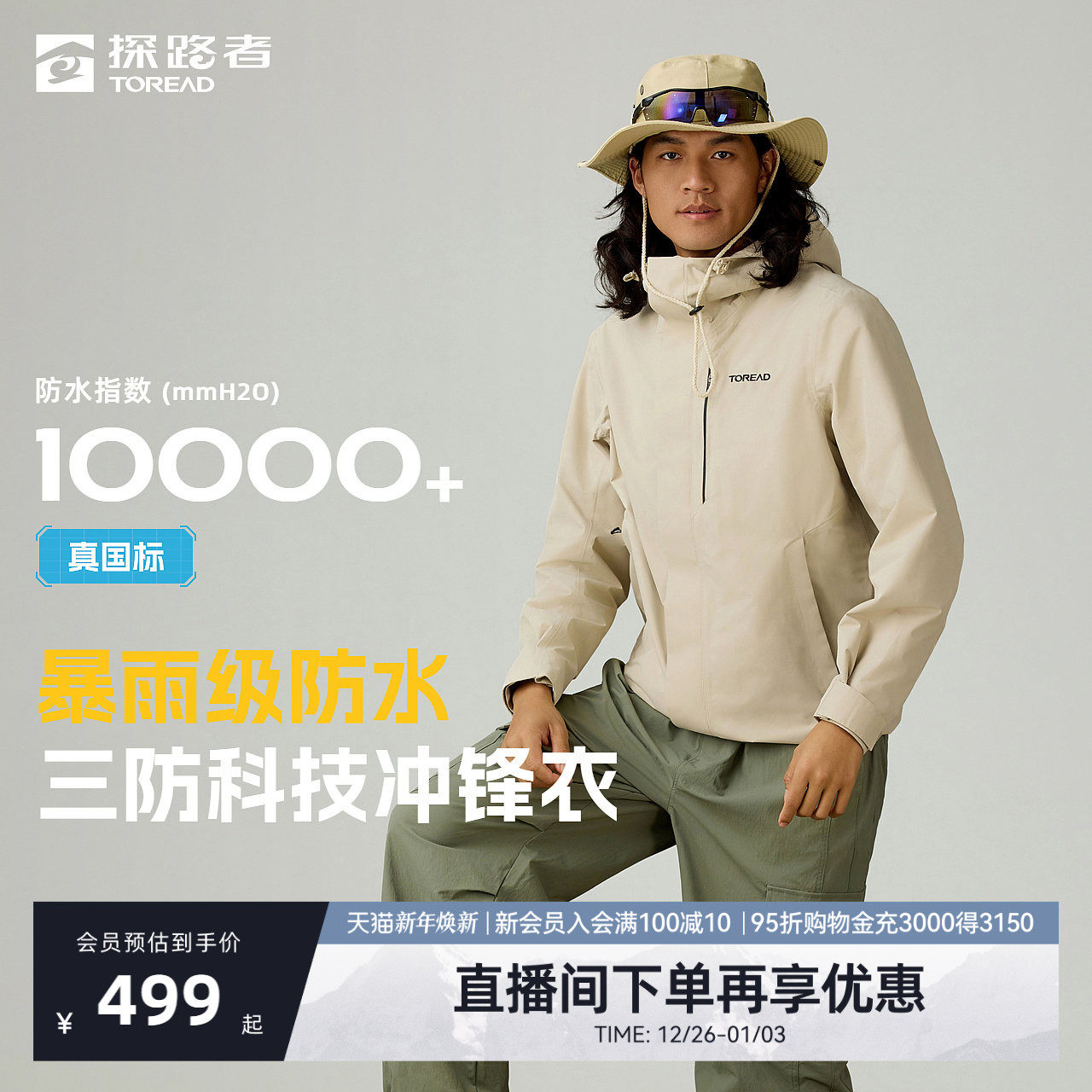 探路者单层冲锋衣2025新款男士防风衣暴雨级防水排汗透湿三防外套