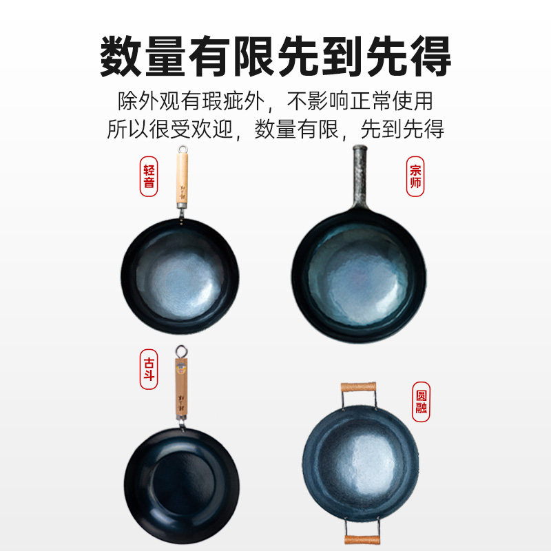 章丘铁锅官方正品臻三环家用手工锻打无涂层炒菜锅(轻瑕疵款)