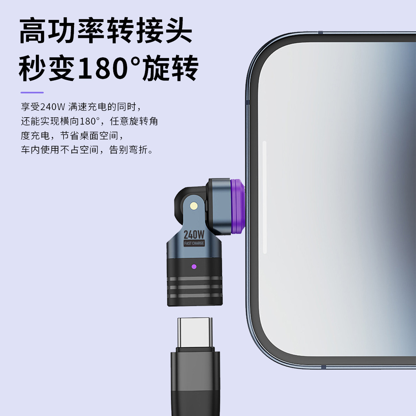 240W磁吸转接头弯头180度旋转5a超级快充强力磁铁吸头公对母闪充数据线适用苹果华为安卓手机电脑typec转换头