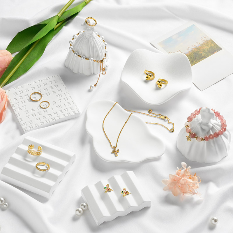 高级感白色石膏摆件 ins风首饰品耳环项链戒指摆拍摄影道具拍照装饰品简约背景布景静物产品极简珠宝首饰精致