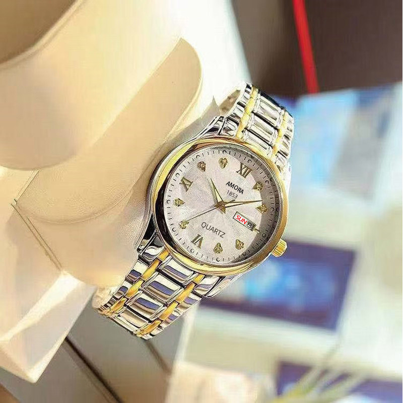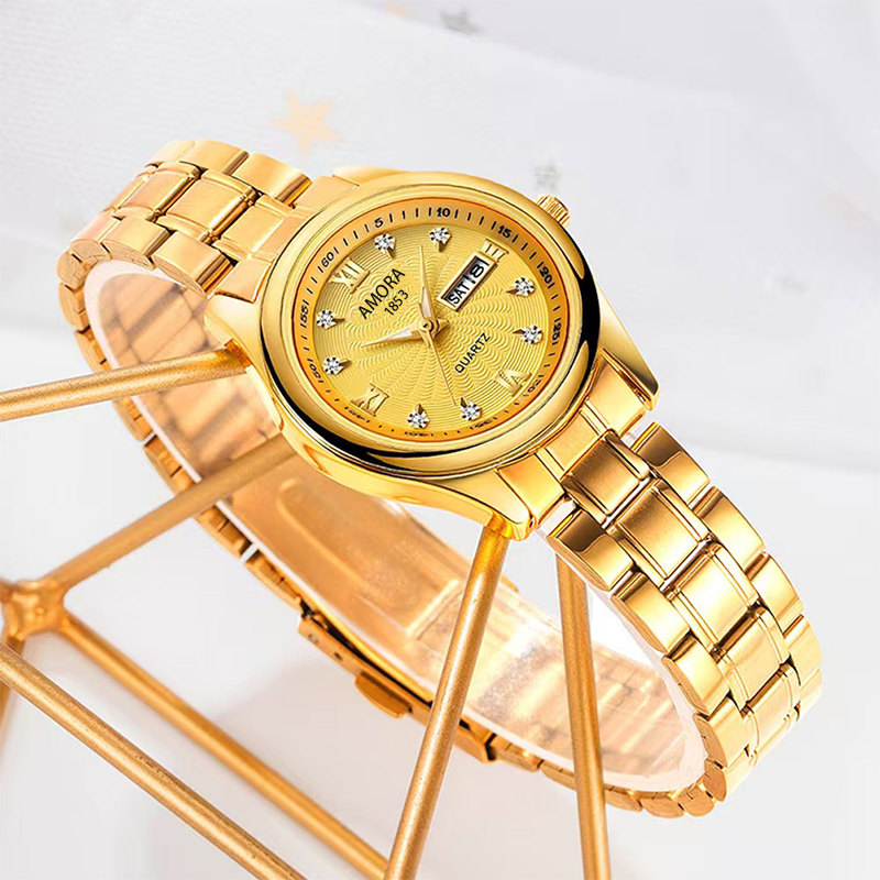 2025新款全自动女士手表夜光防水双日历钢带非机械表大表盘石英