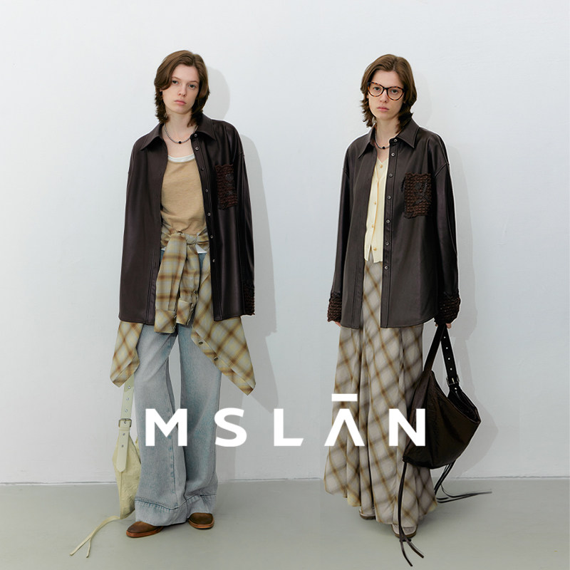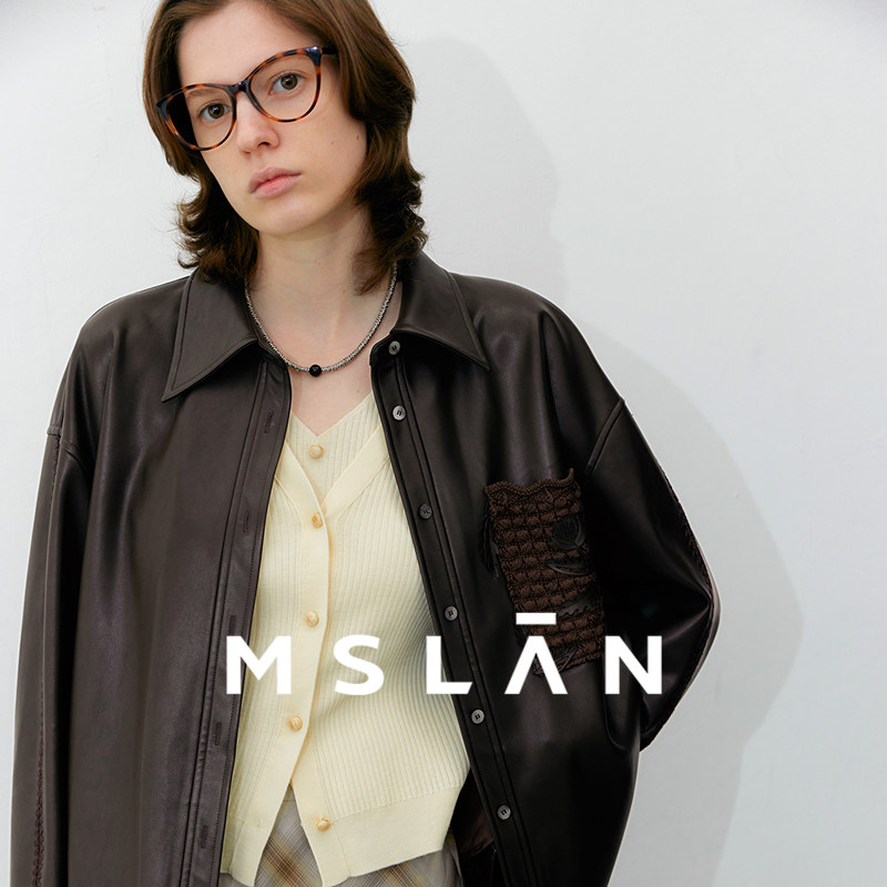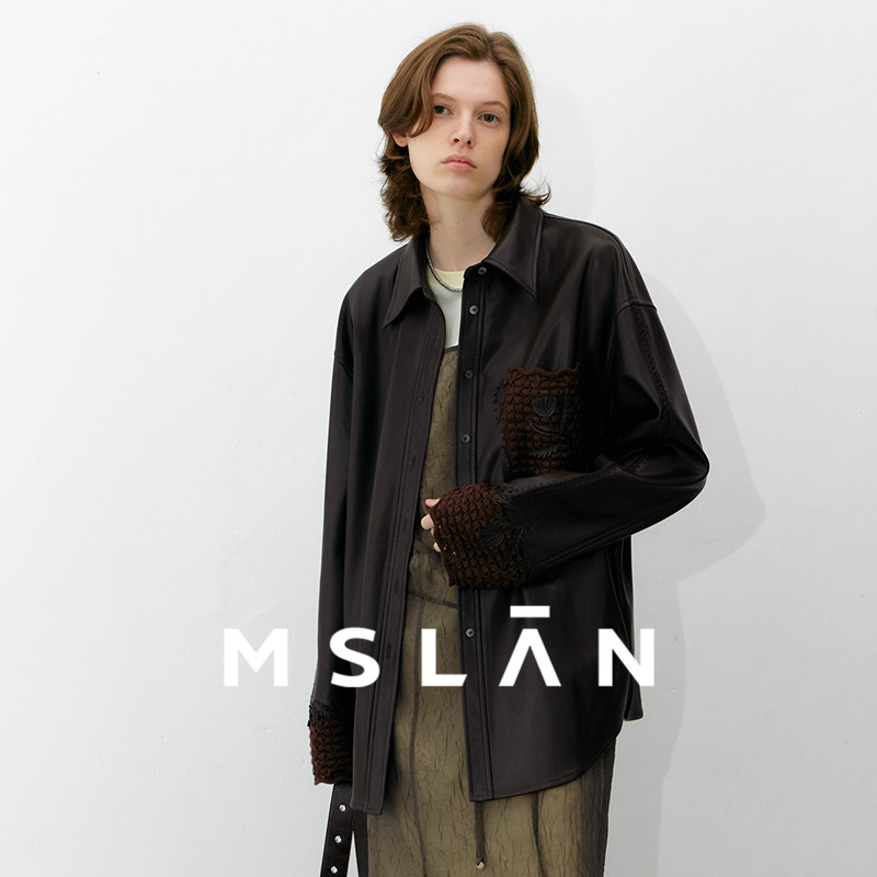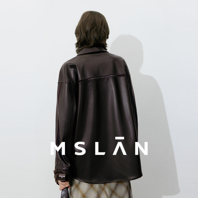 MSLAN美拉德皮衣 26春设计感激光贴花贝壳绣衬衫外套MGCN412