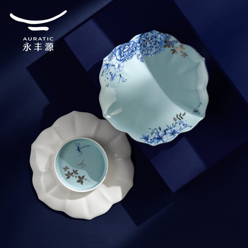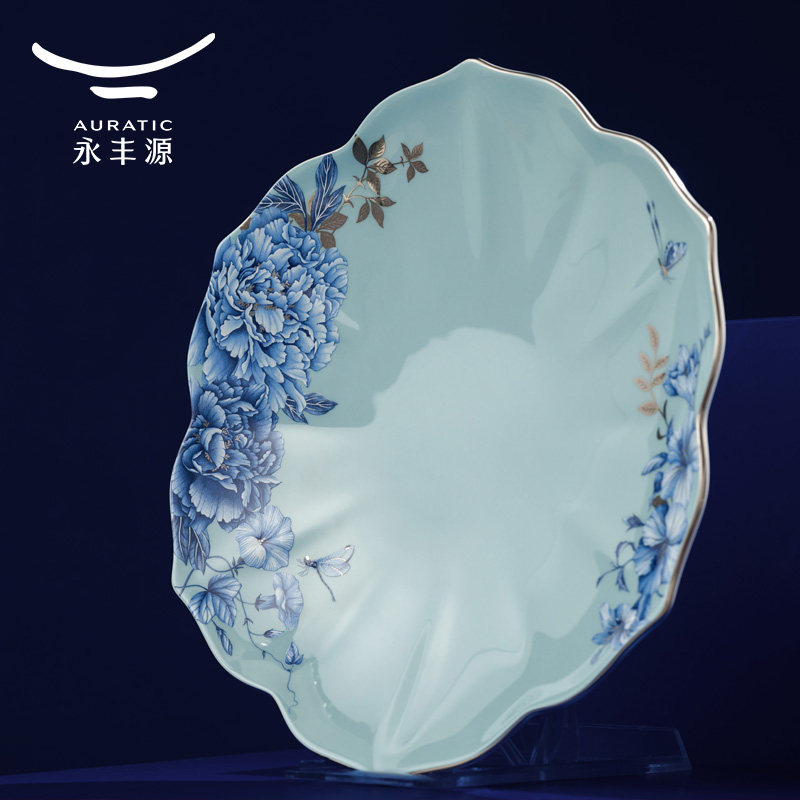 永丰源铂金青花餐具散件 陶瓷碗骨碟调羹鱼盘汤盘 安全包装