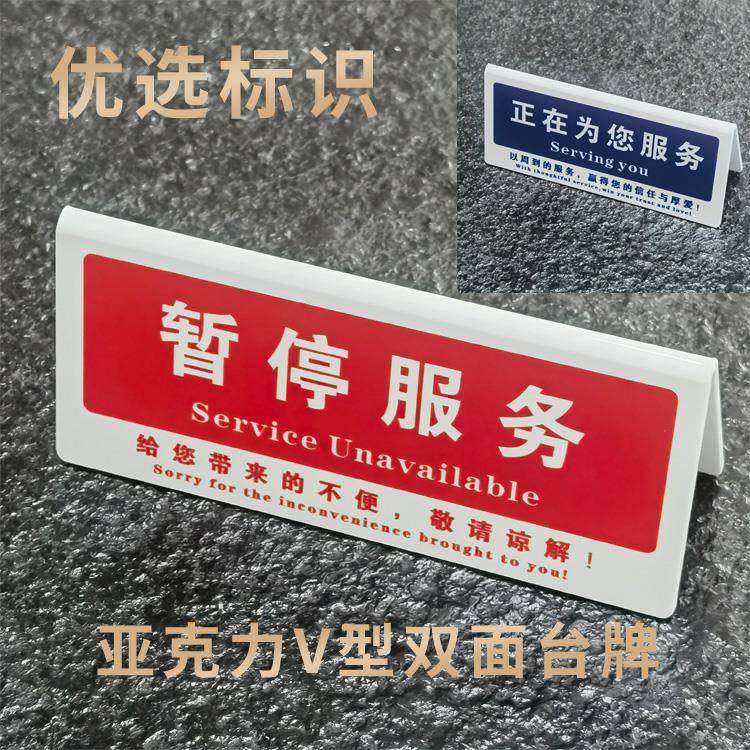 暂停服务银行单位柜台正在为您服务压克力V型双面台牌超市收银柜台