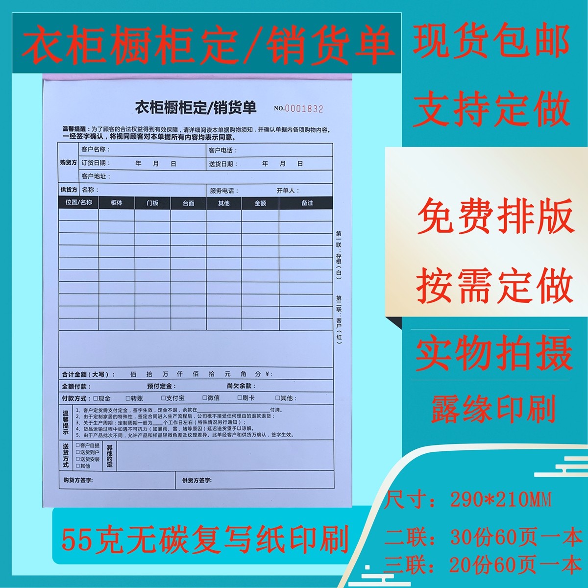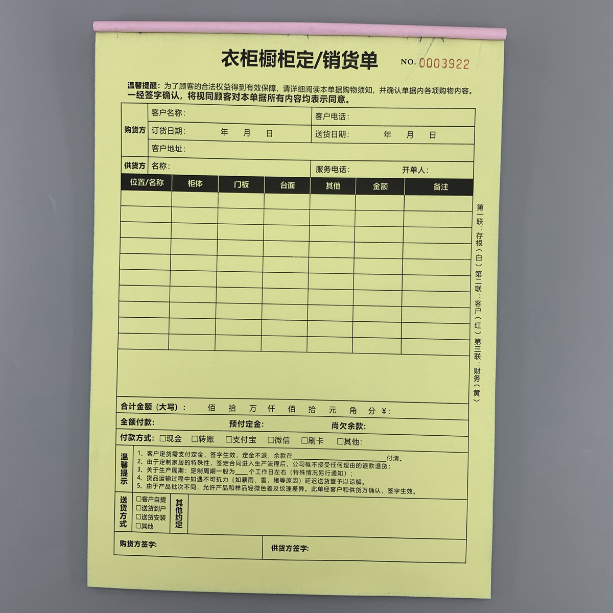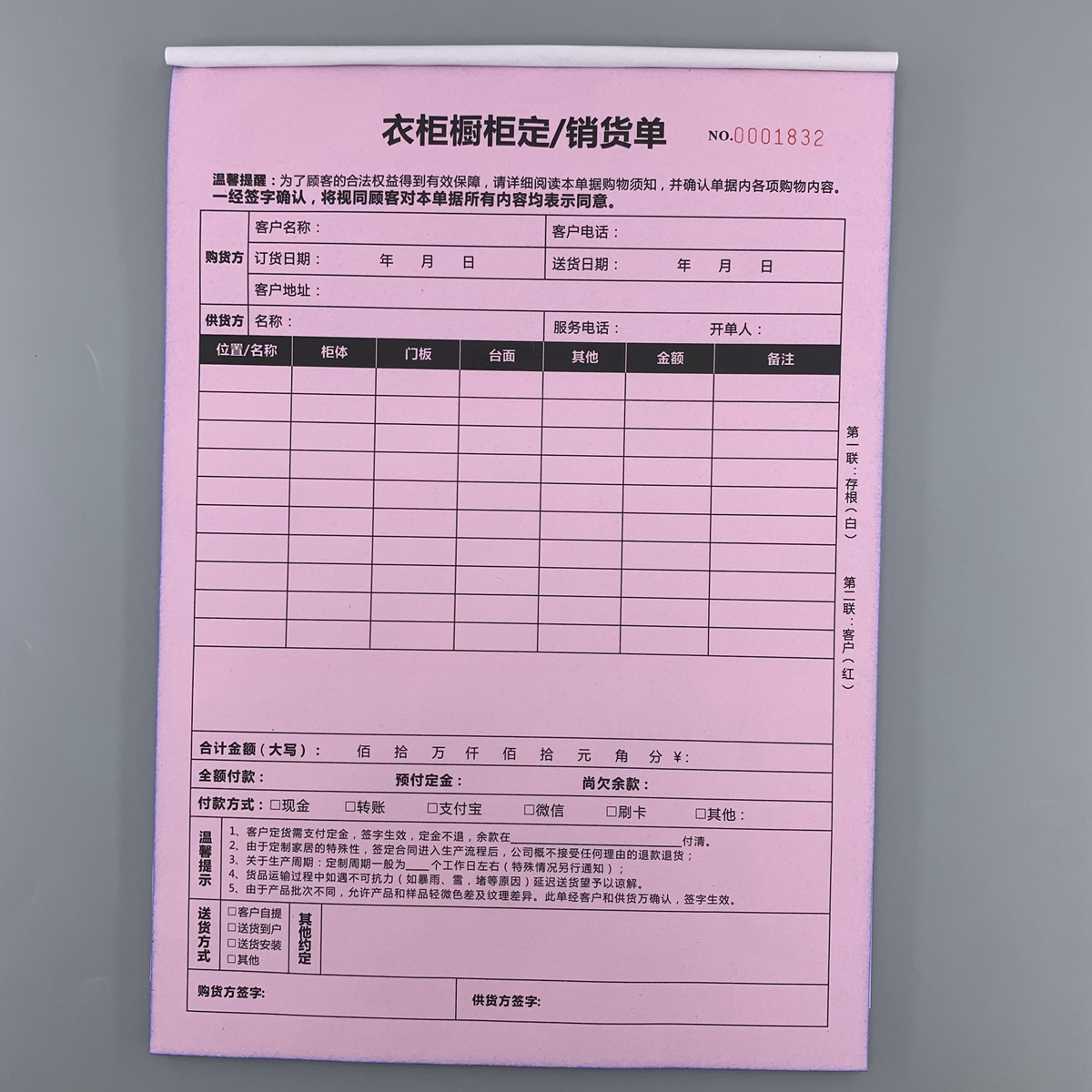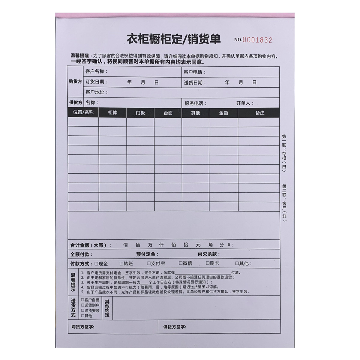 衣柜订货单橱柜定销货单全屋定制合同送货单家俱销售单木门定制单