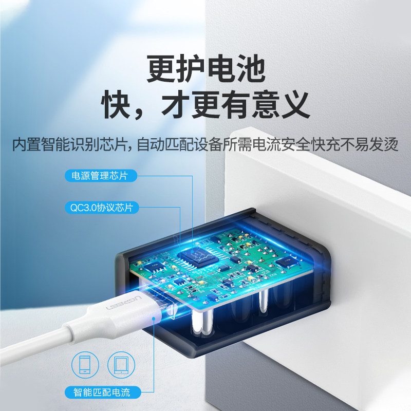 绿联5v3a充电器18W快充头USB适用小米红米oppo三星vivo安卓手机耳机数据线typec套装5v1a/5v2a通用9v2a充电头