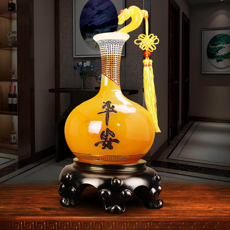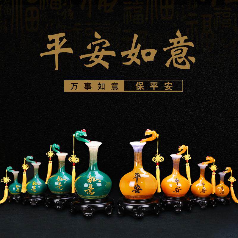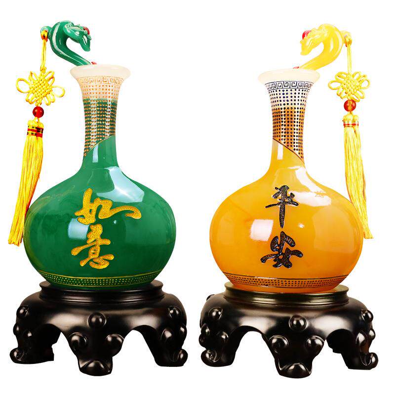 中式平安如意瓶一对摆件客厅酒柜家居装饰品树脂工艺商务礼品