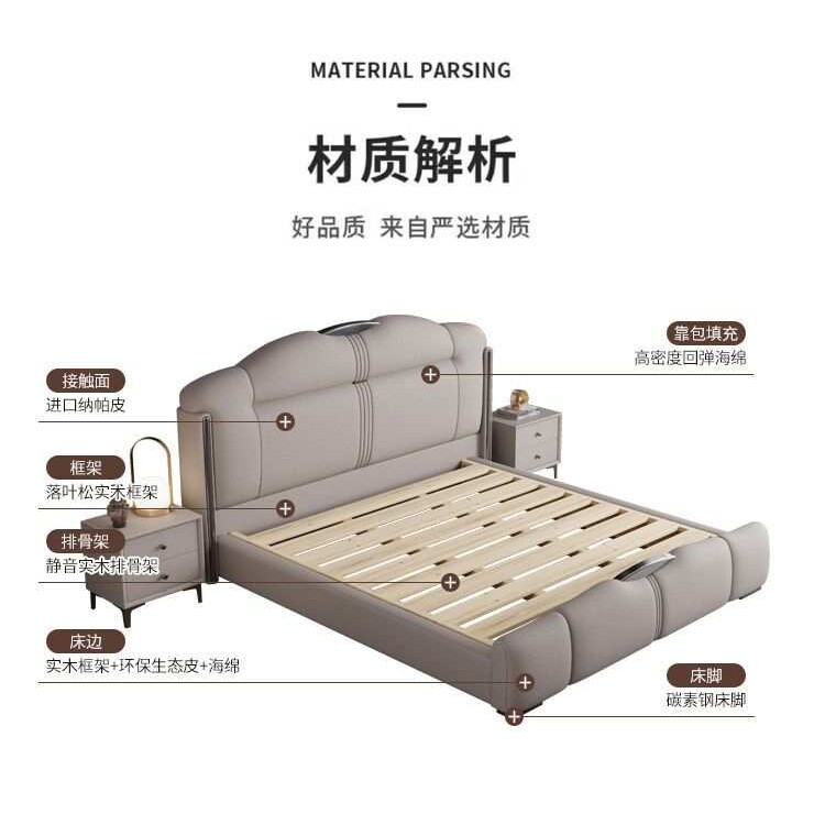 意式真皮床网红轻奢现代简约床双人主卧婚床储物高端皮艺床软包床