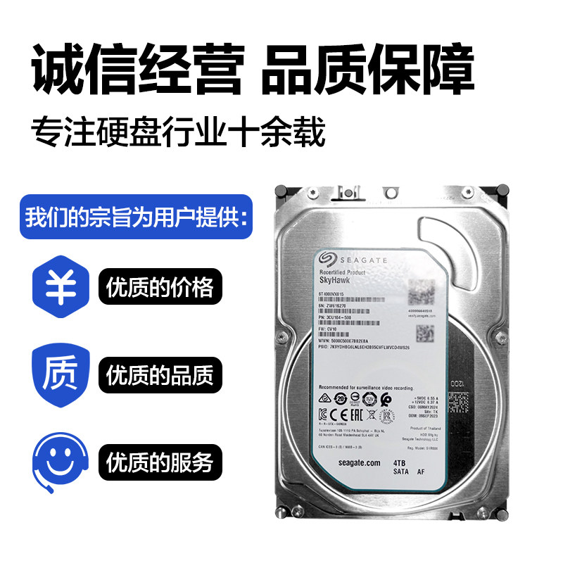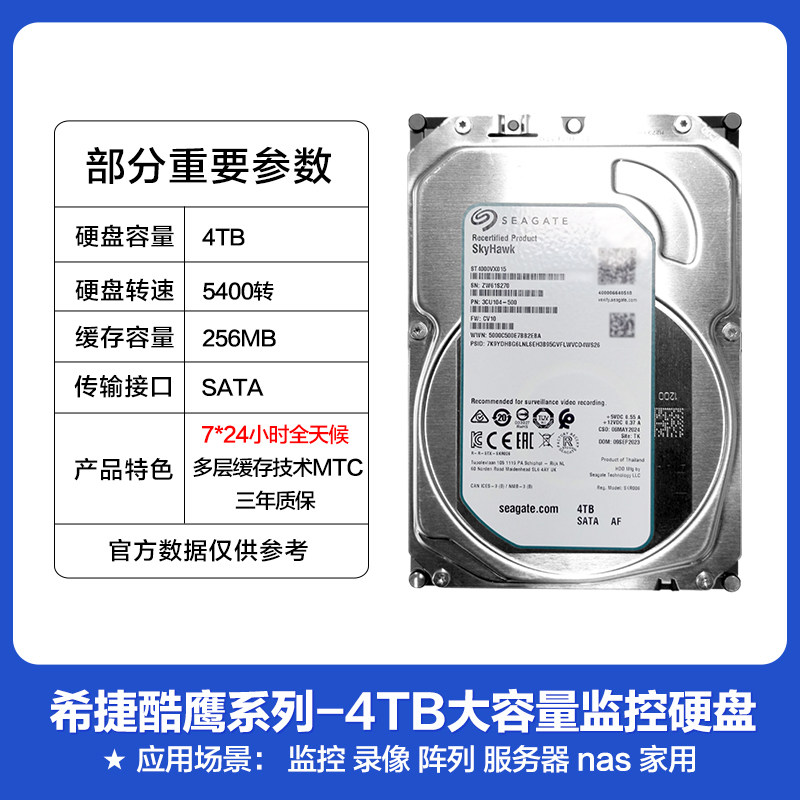 Seagate/希捷酷鹰4T监控CMR垂直硬盘4tb办公游戏机械ST4000VX015