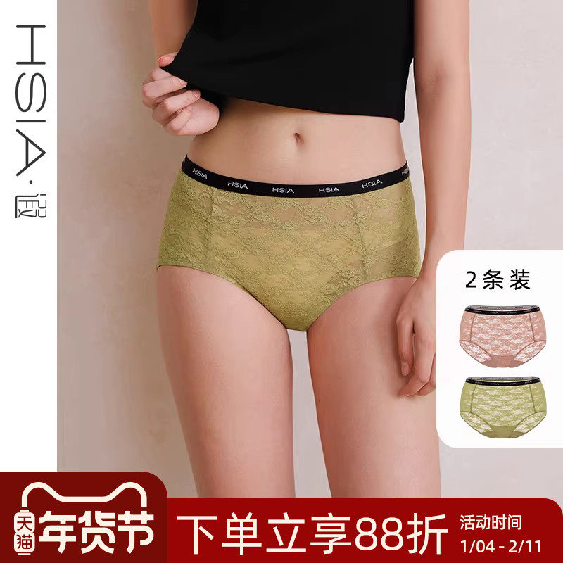 遐全蕾丝酷感LOGO带纯棉裆内裤女生高腰大码包臀女士平角裤新款