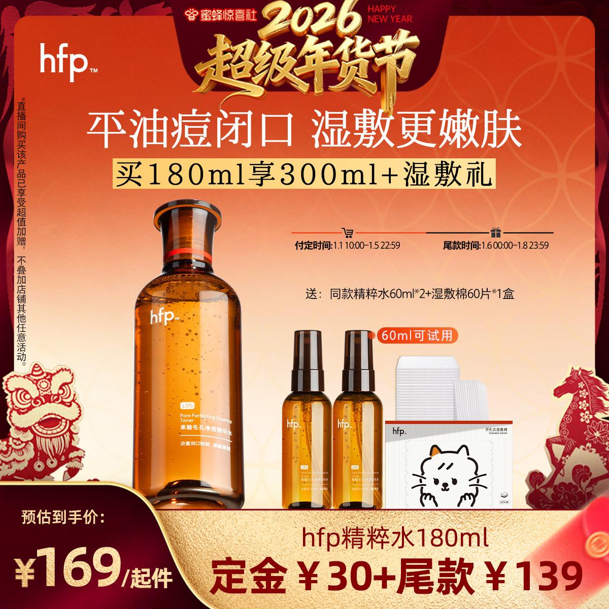 【超级年货节】 hfp果酸精粹水湿敷乳糖酸爽肤水补水保湿