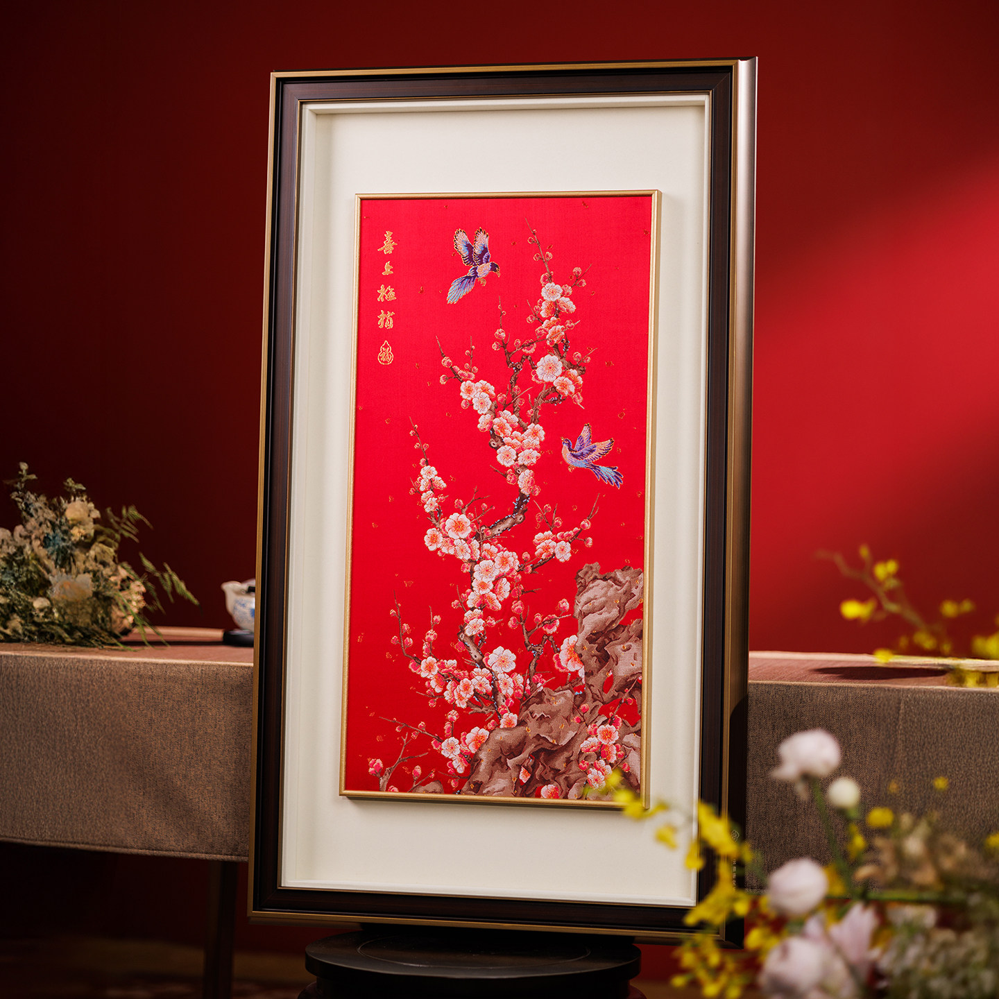 福禧临门南京云锦研究所中式非遗收藏送长辈朋友商务镜框装饰画