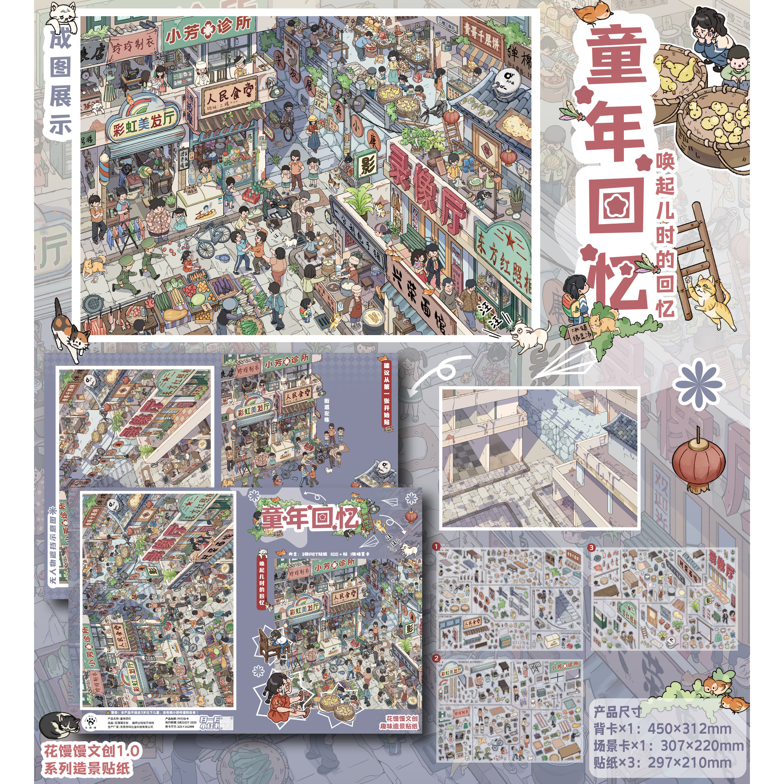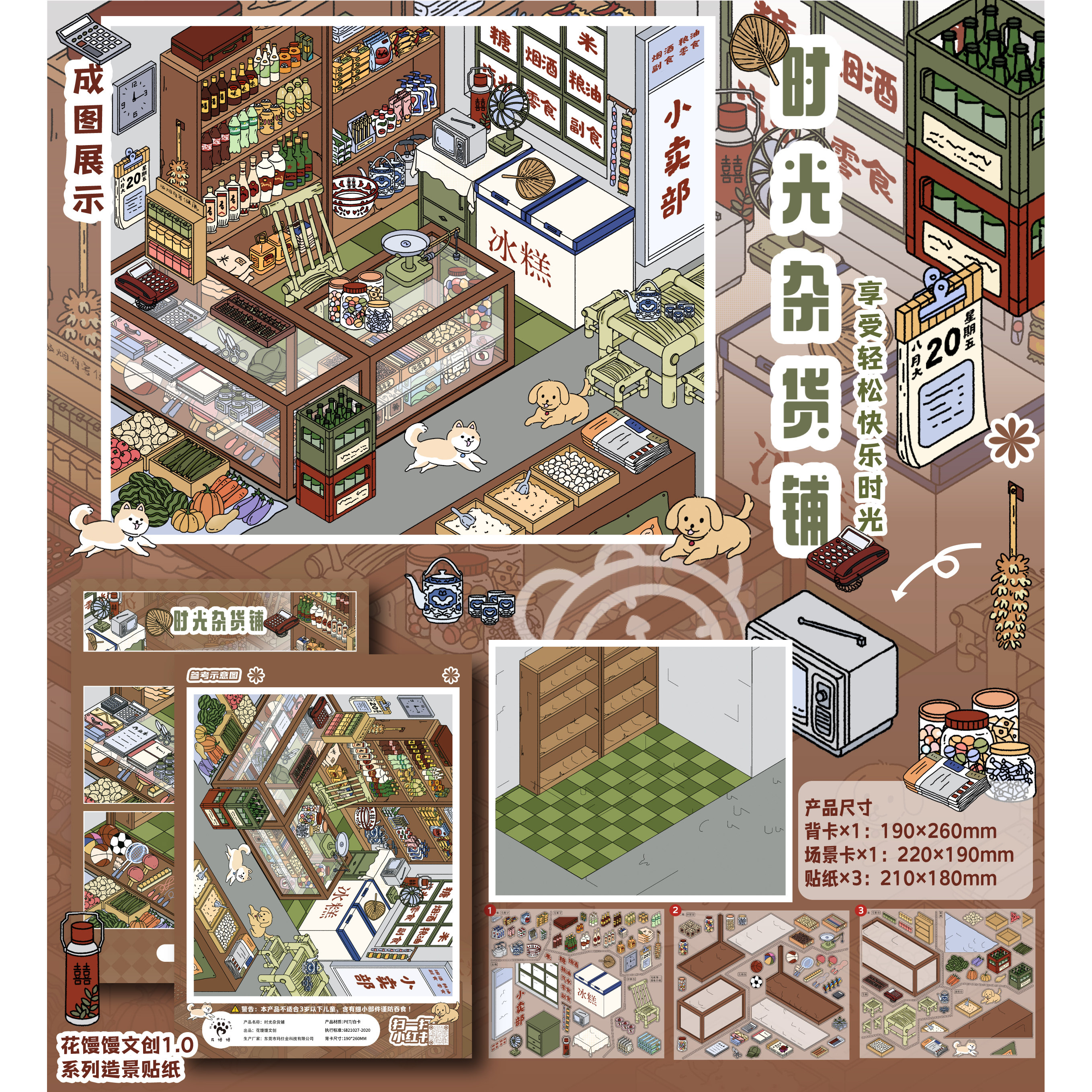 【送金羽夹】花馒馒文创1.0造景贴纸怀旧系列童年回忆时光杂货铺高难度3D立体小屋贴画手帐玩具女孩打发时间