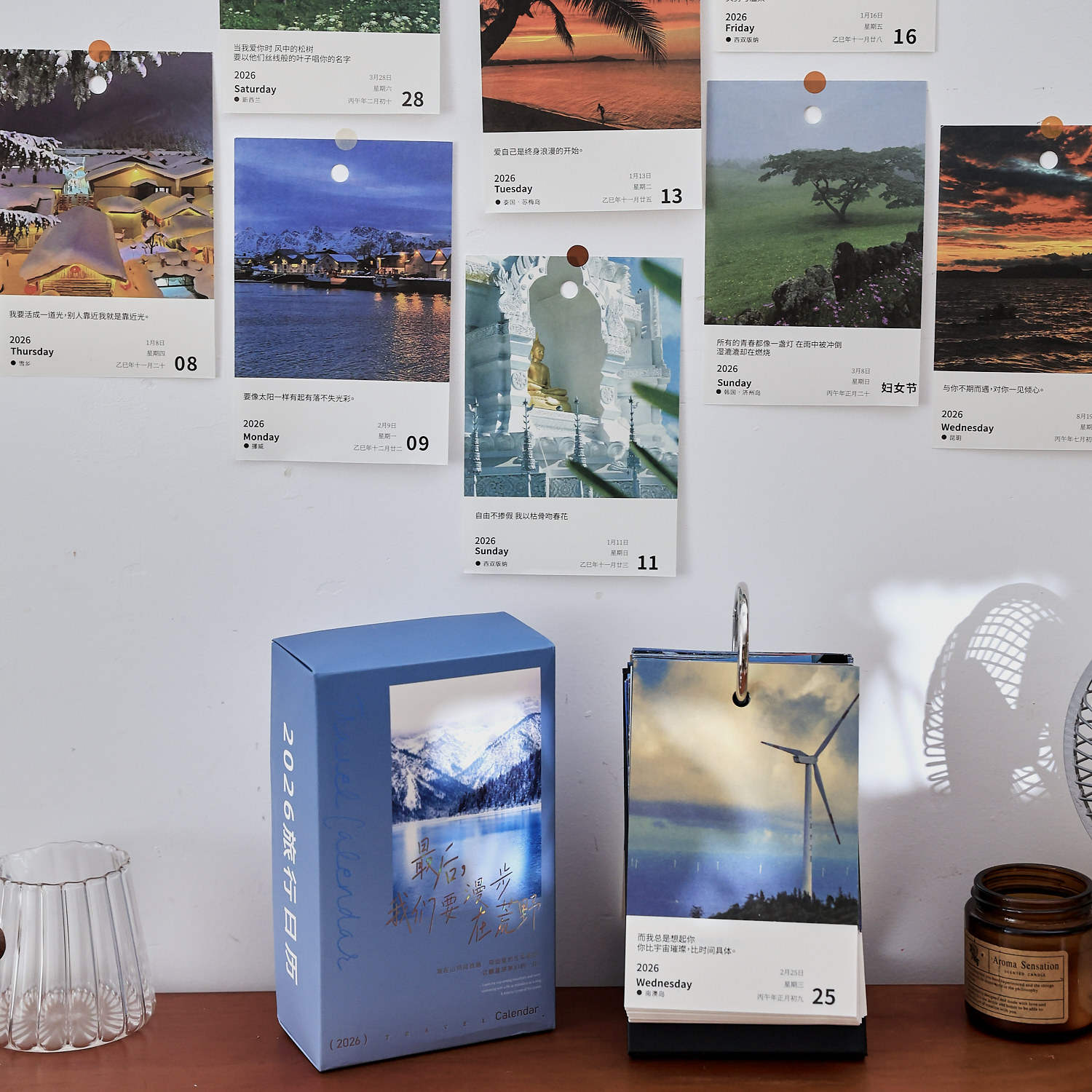 盐岛时光 2026年旅行日历 ins文艺风景每日一页台历桌面摆件礼物