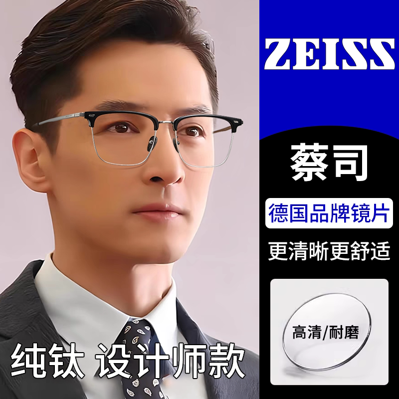 蔡司眼镜半框男款近视可配度数眼镜框小框超轻纯钛防蓝光散光眼睛