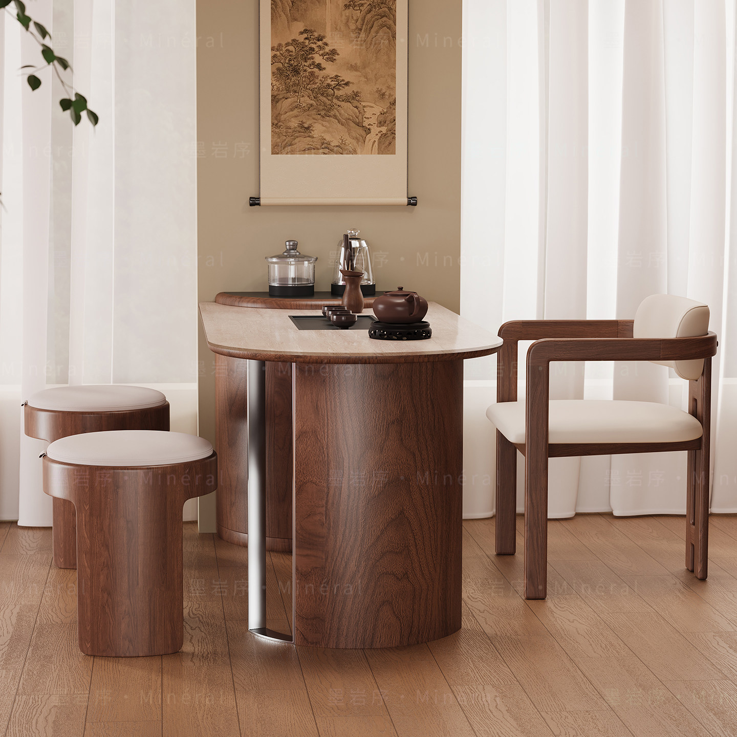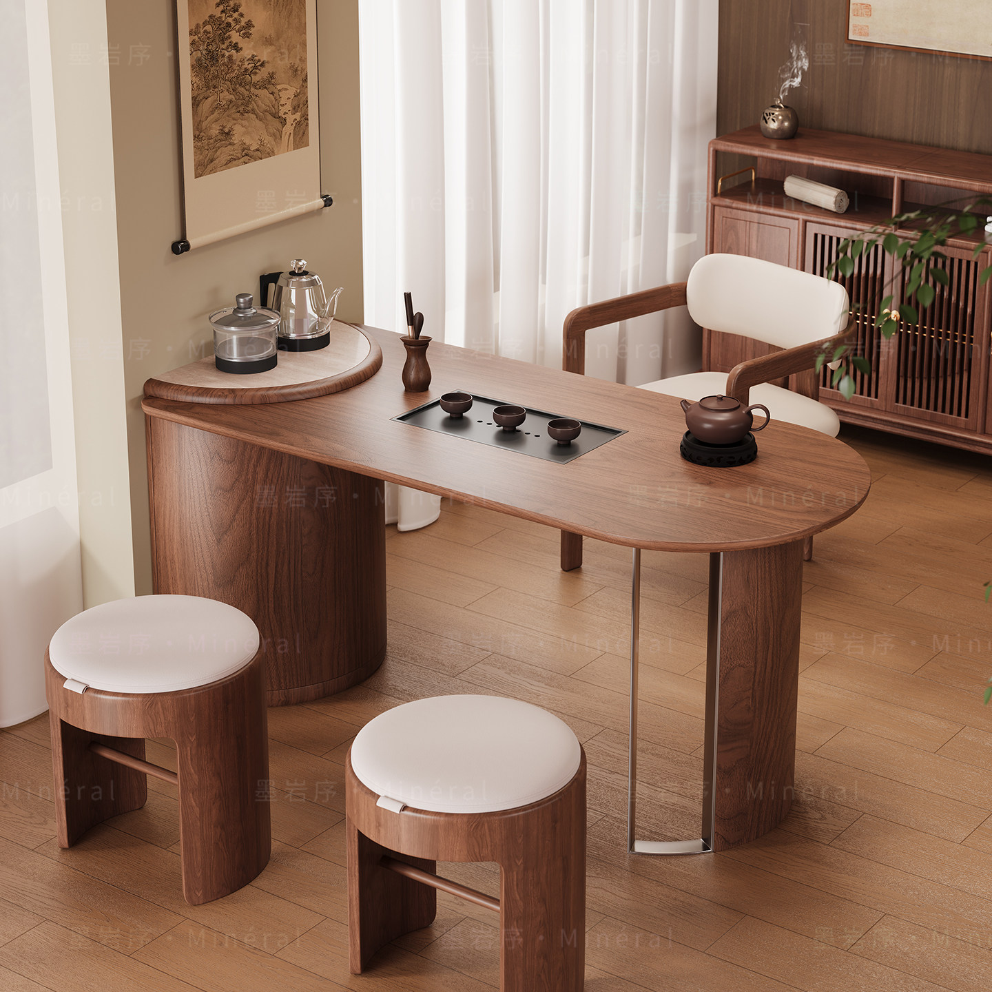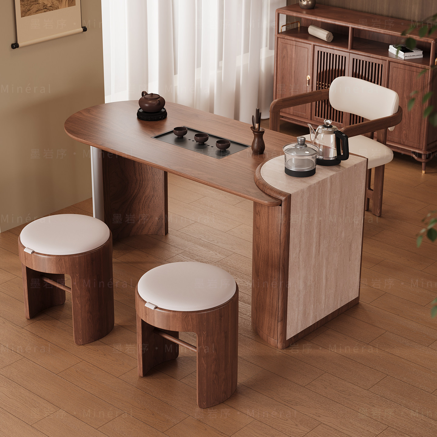 新中式阳台茶桌椅组合现代简约实木白蜡木小户型高端功夫茶台新款