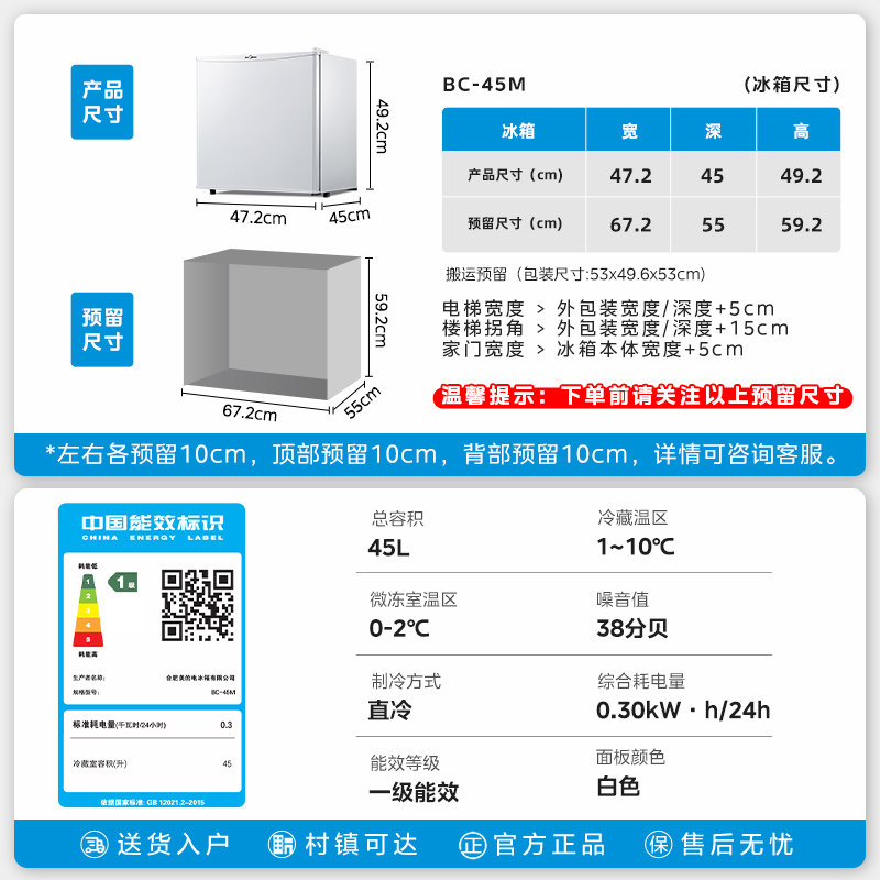 美的45升白色单门小型电冰箱冷藏家用节能官方租房宿舍客厅冰箱