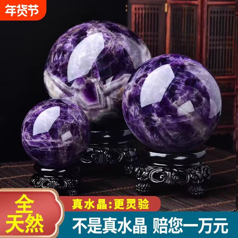 天然紫色真水晶球摆件纯原矿石招财旺运客厅厨房办公室礼品紫水晶