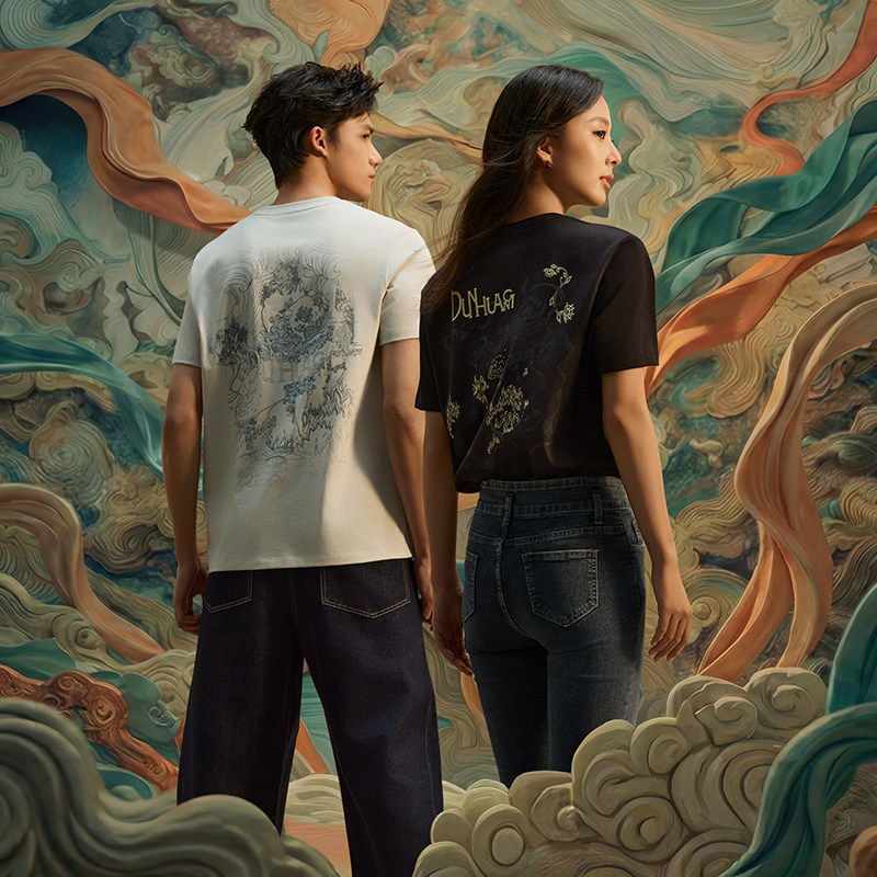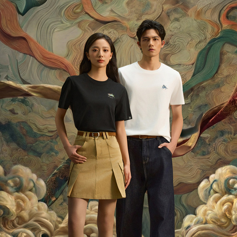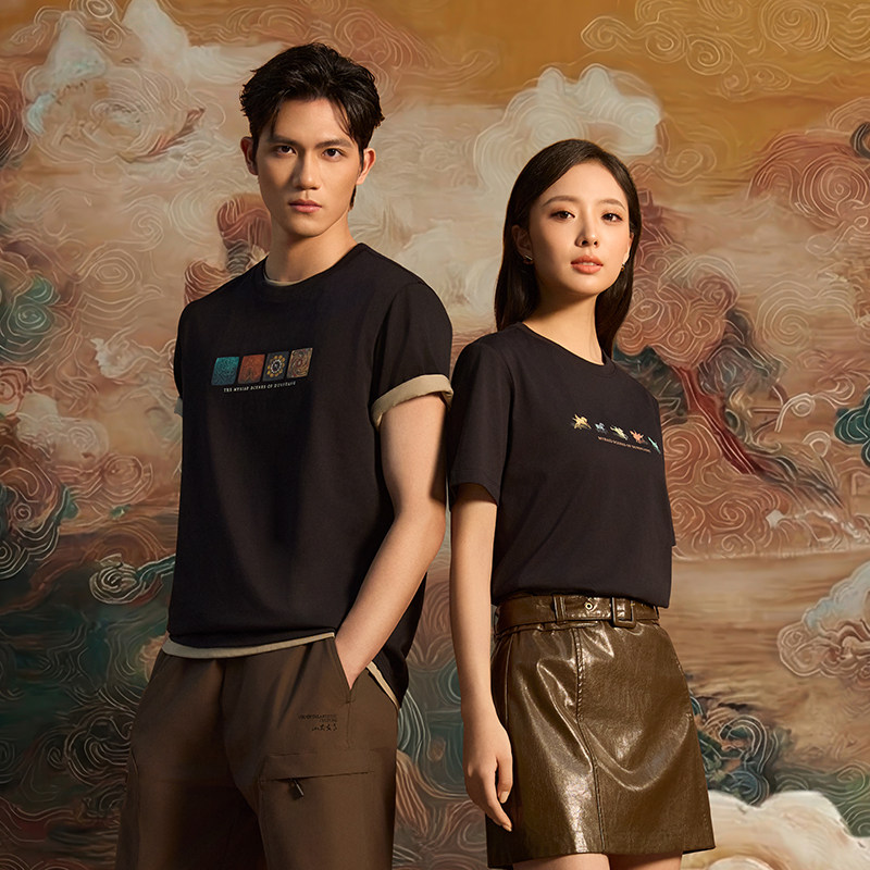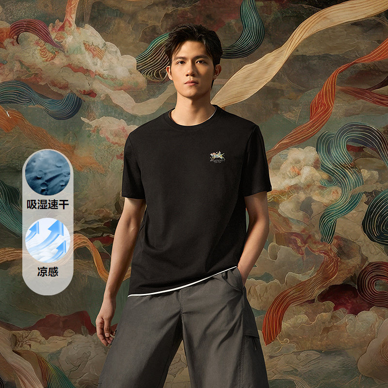【凉感】HLA海澜之家敦煌26春夏新印花时尚圆领马到成功短袖T恤男