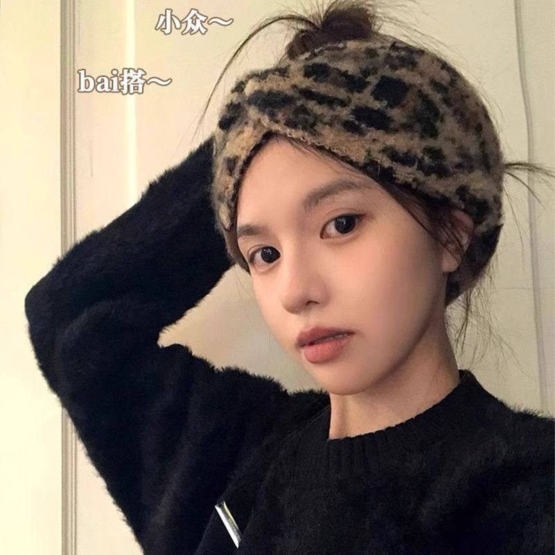 复古豹纹针织洗脸发带宽边束发带女秋冬保暖头箍不勒头发饰高级