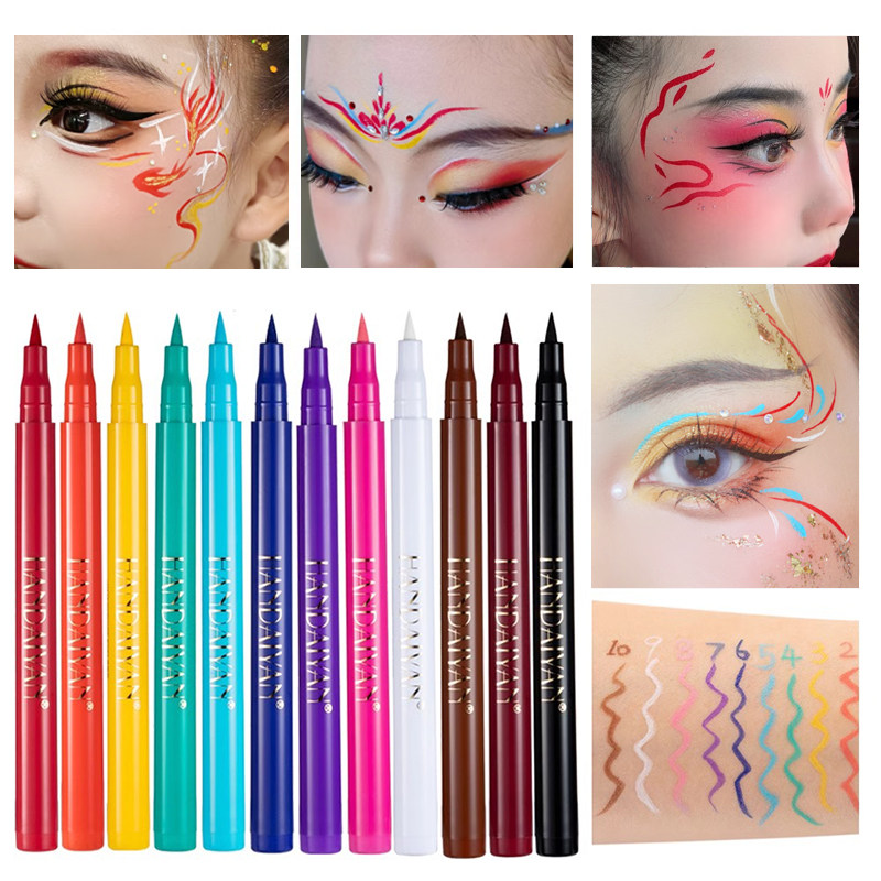 彩绘笔舞台妆眼线画笔白色红色黄色蓝色眼线液笔水溶性画笔彩绘膏
