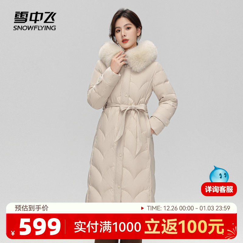 雪中飞2025秋冬新款女长款连帽羽绒服狐狸毛大毛领气质优雅过膝暖