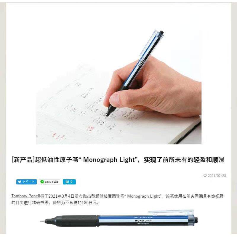 新款 蜻蜓TOMBOW超人气MONO Graph lite油性867S低粘度按动圆珠笔