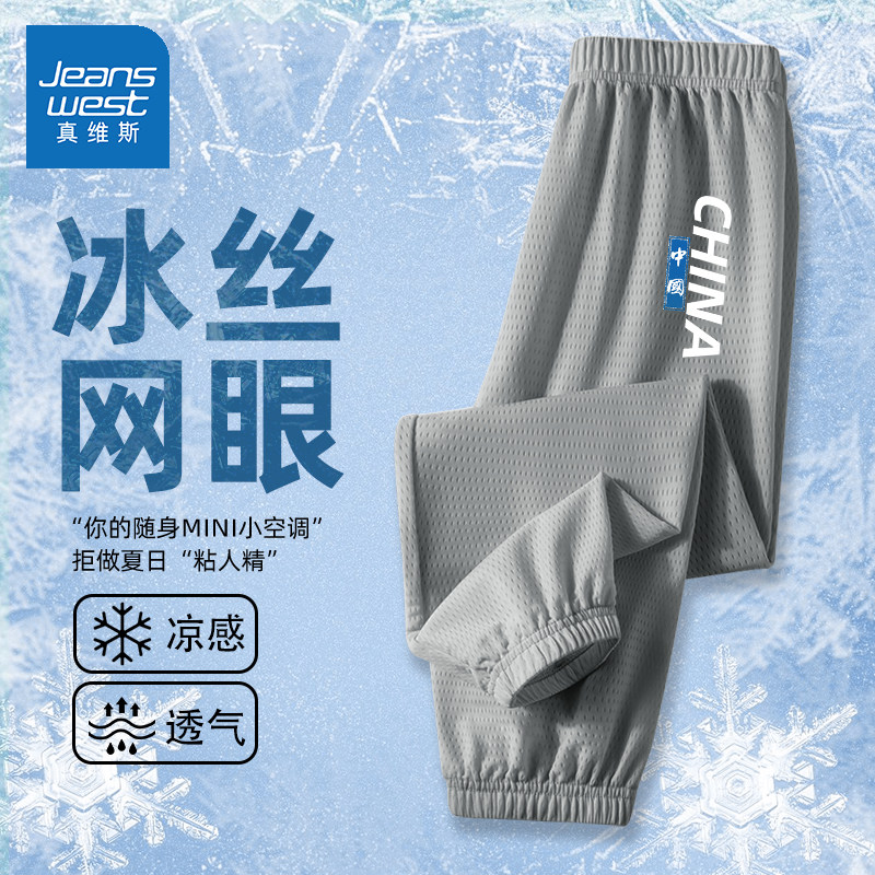真维斯童装儿童防蚊裤夏季薄款2025新款运动裤灰色冰丝裤男童夏装
