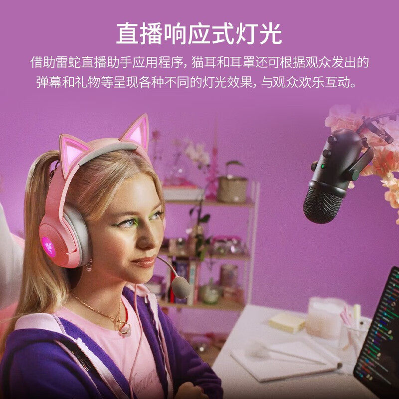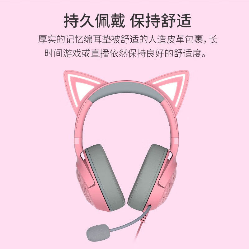 Razer雷蛇北海巨妖萌猫版V2粉晶USB头戴RGB游戏耳机