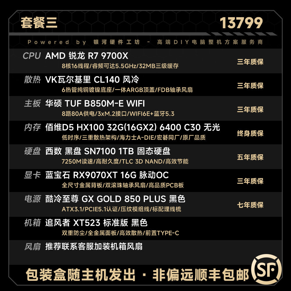 【B站51972推荐】9070XT/华硕/瀚铠/蓝宝石DIY游戏电脑主机