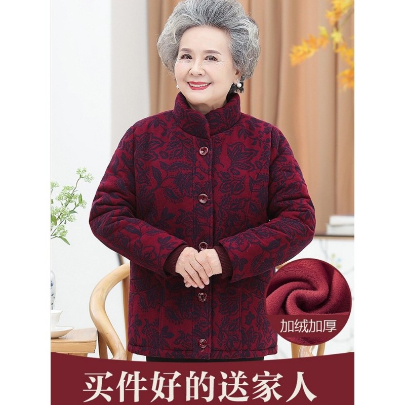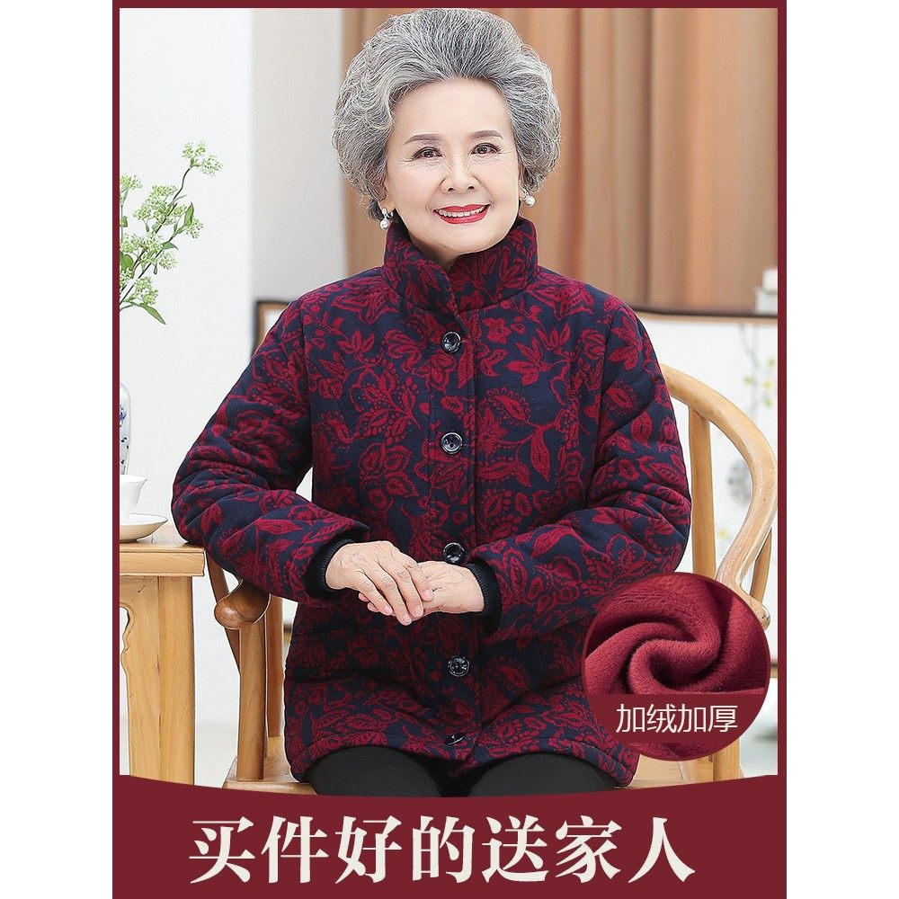 中老年人冬装棉衣女奶奶加绒加厚妈妈短款外套立领老太太棉袄宽松