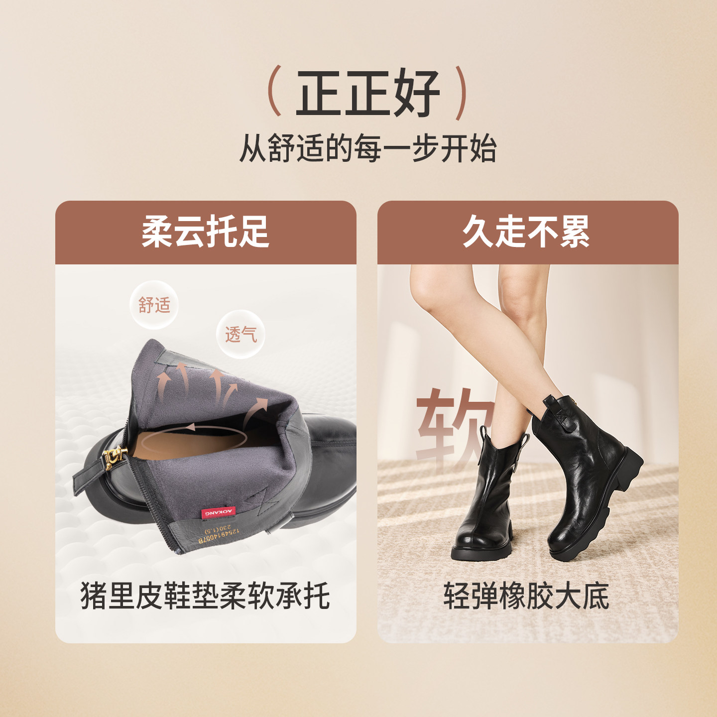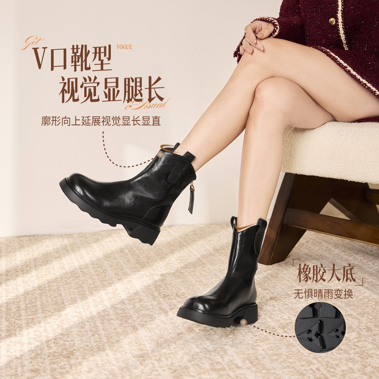 奥康 女鞋2025冬季时装靴复古弹力靴显腿长粗跟增高通勤百搭短靴