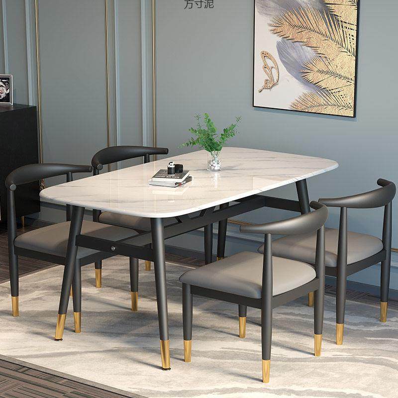 仿大理石餐桌椅组合家用小户型现代简约轻奢长方形吃饭桌子供应链
