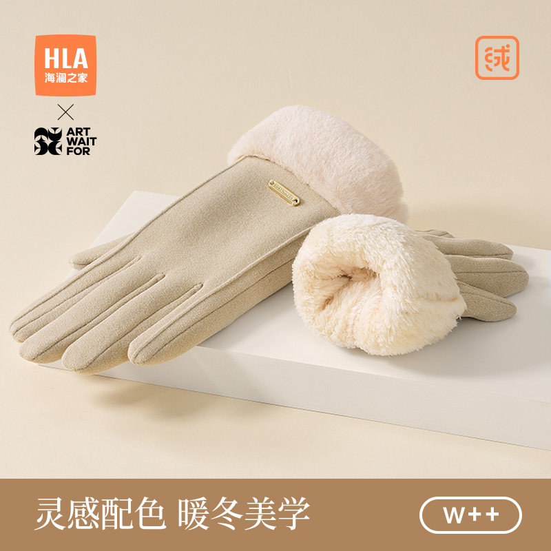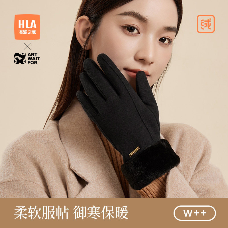 海澜之家手套女士2025新款秋冬保暖户外骑行加绒加厚触屏防寒防滑