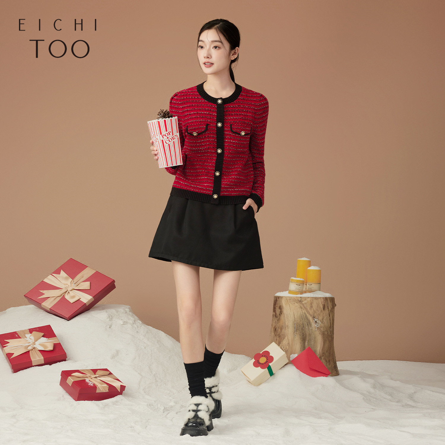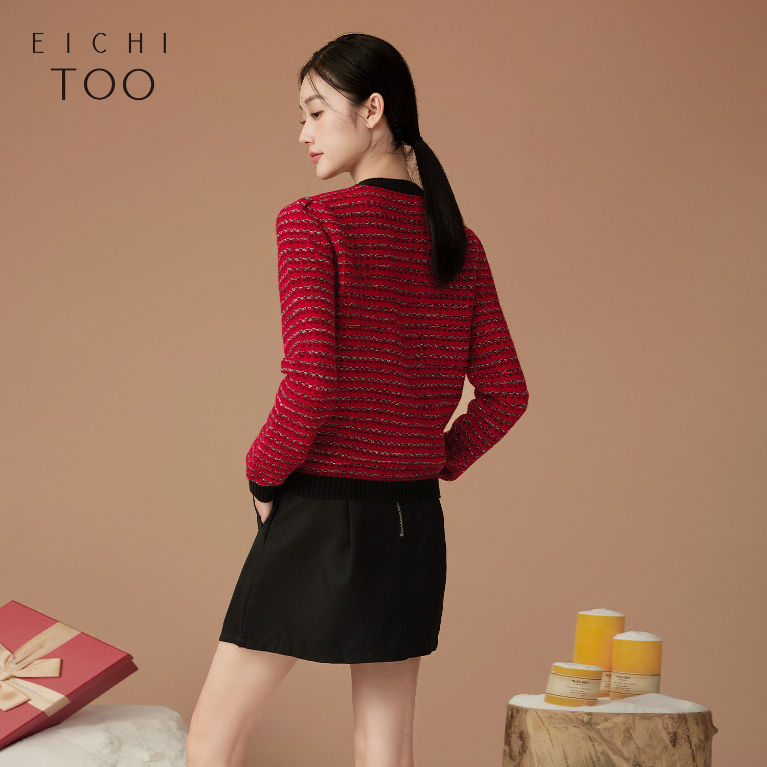 爱居兔冬季新款时尚氛围感小香风长袖针织衫