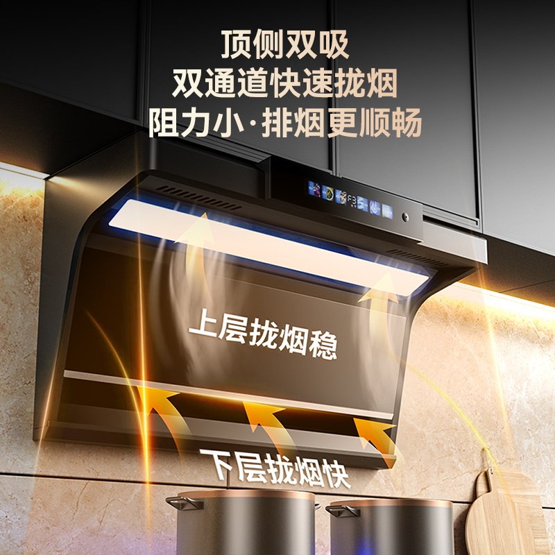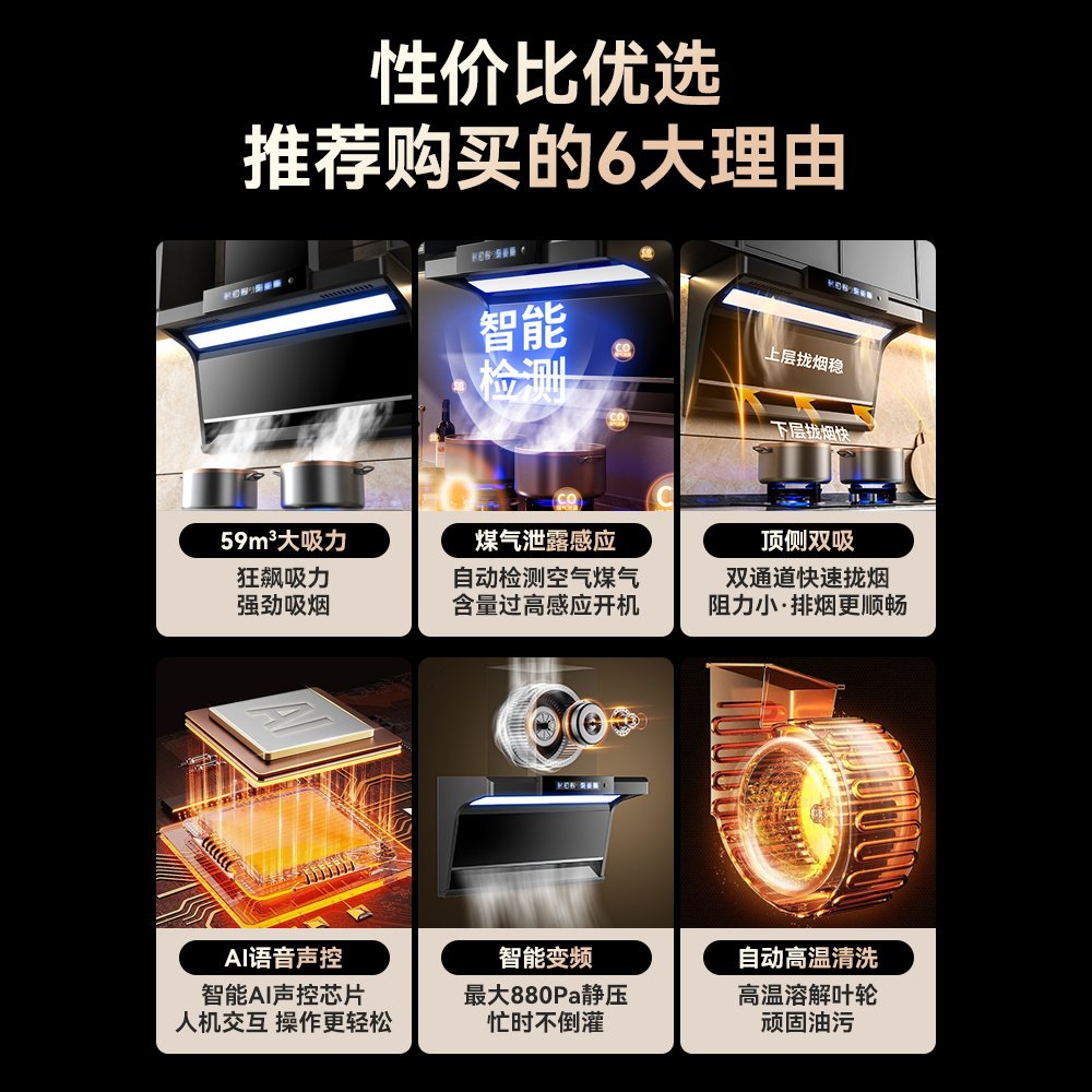 惠厨好太太抽油烟机家用厨房大吸力顶侧双吸油烟机自动清洗油烟机