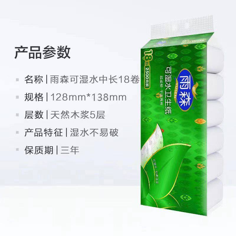 雨森卷纸卫生纸2500克18卷可湿水大卷家用原生木浆纸巾实惠装优等