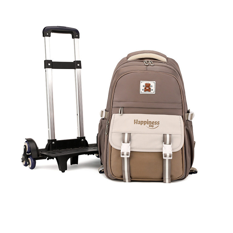 自然鱼新款爬楼梯拉杆书包初中大容量可拆卸减负护脊儿童书包