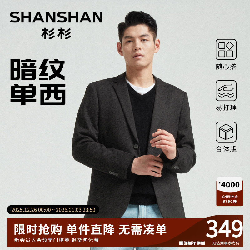 [暗纹]杉杉西装外套男2025春秋季新款男士休闲西服爸爸单西免烫款