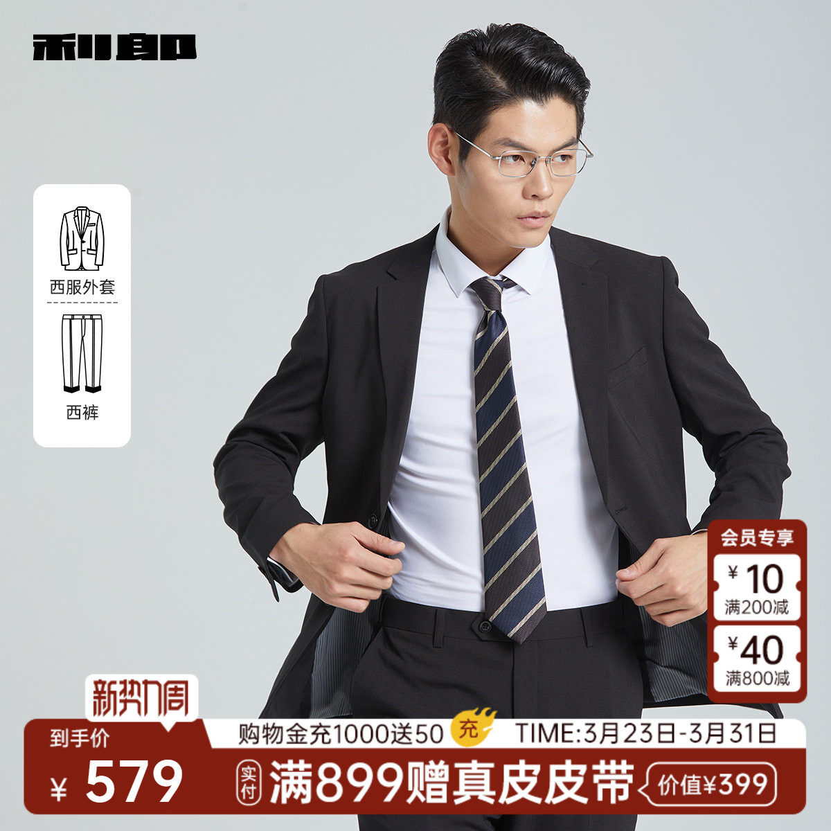 【套西】利郎官方西服套装男士新款商务正装结婚新郎西装男套装