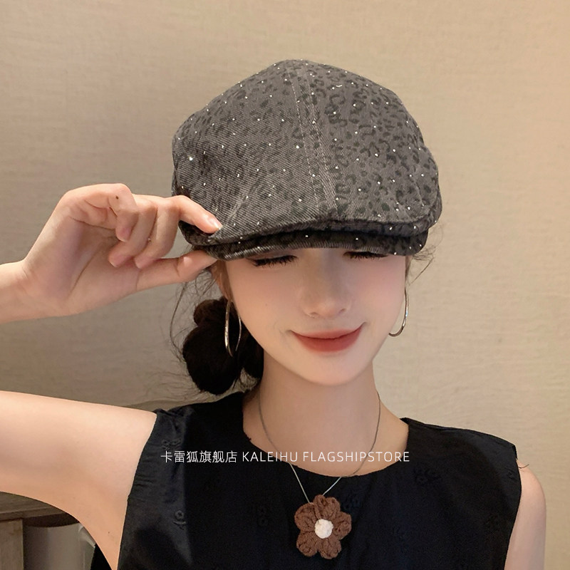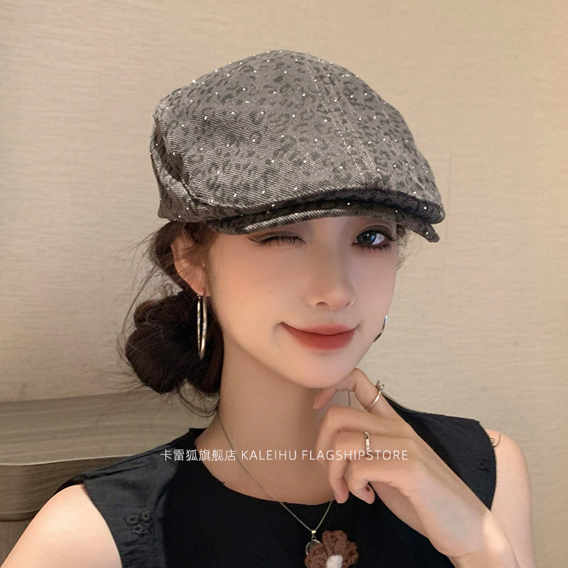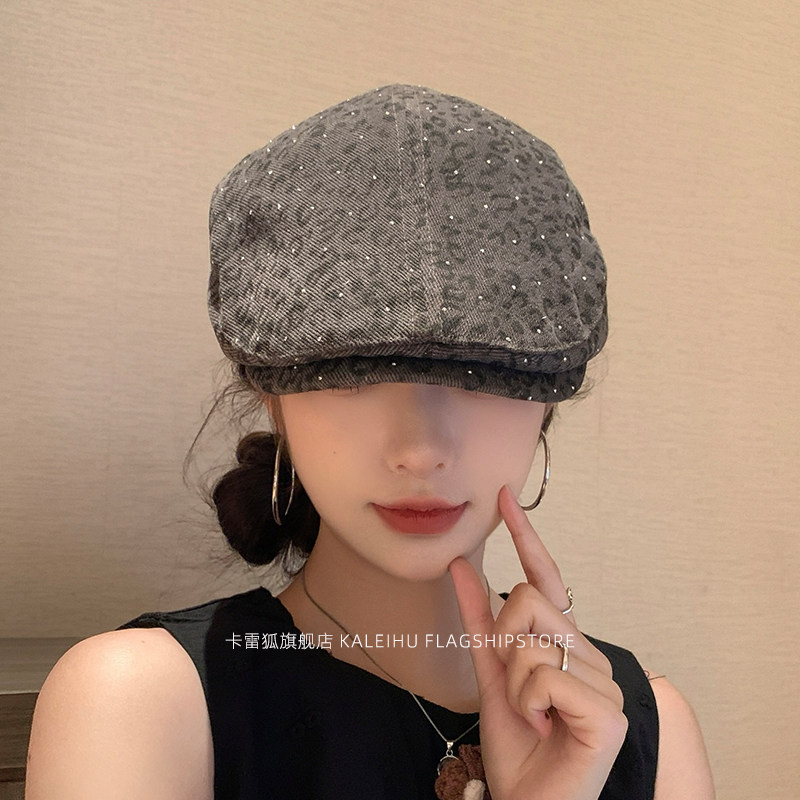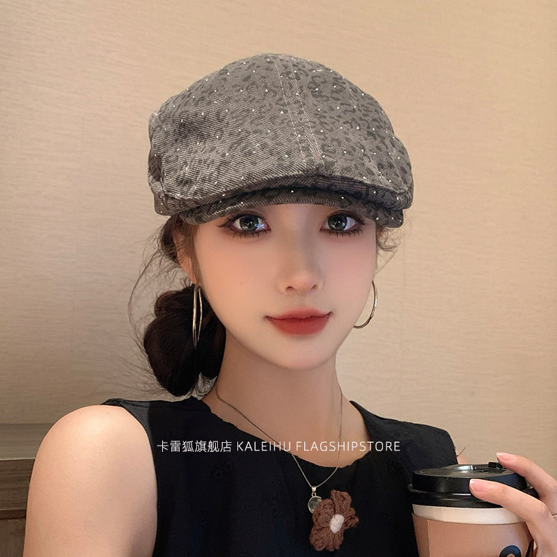 帽子miu系复古小波点贝雷帽百搭显脸小八角帽秋季灰色咖色白色