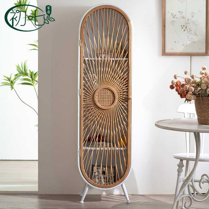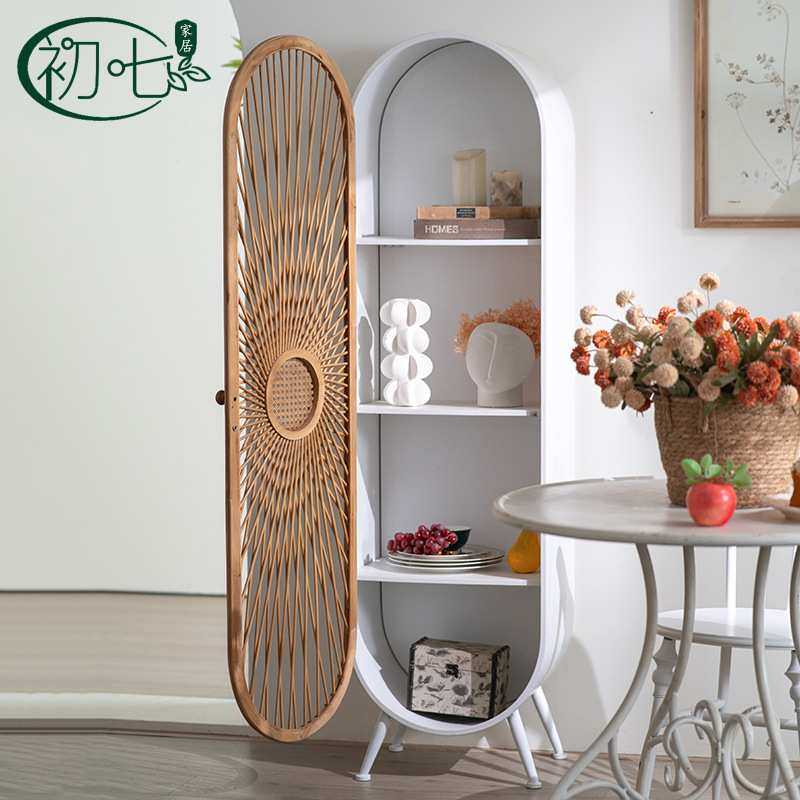日式简约竹编拱形门立柜美式乡村白色铁艺多层陈列柜创意设计角柜