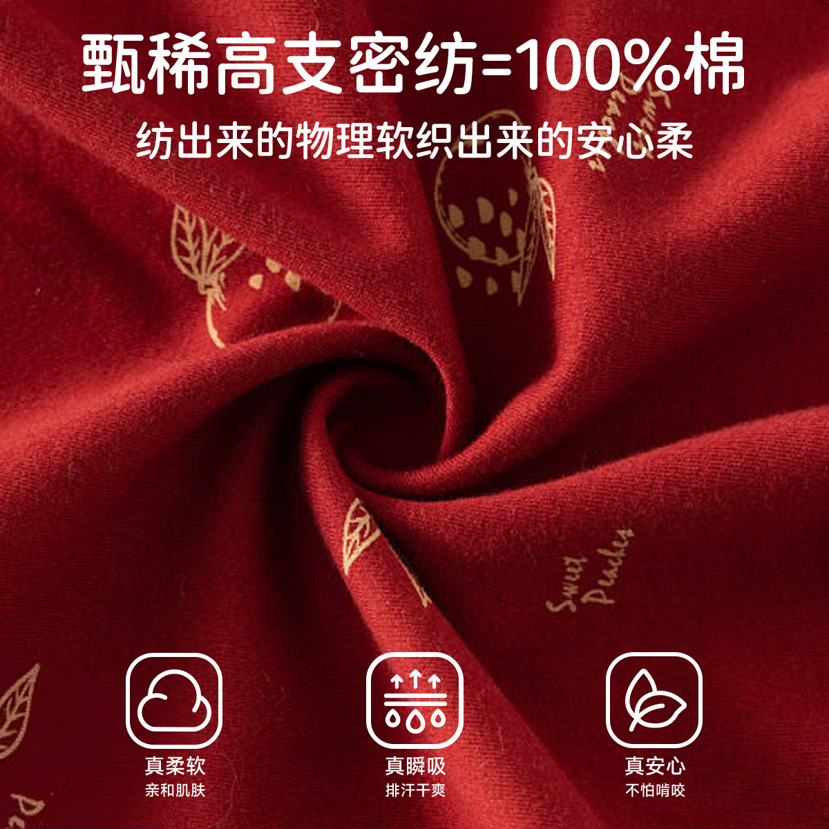 婧麒婴儿连体衣新款纯棉满月百天宝宝拜年衣服红色喜庆新生儿哈衣